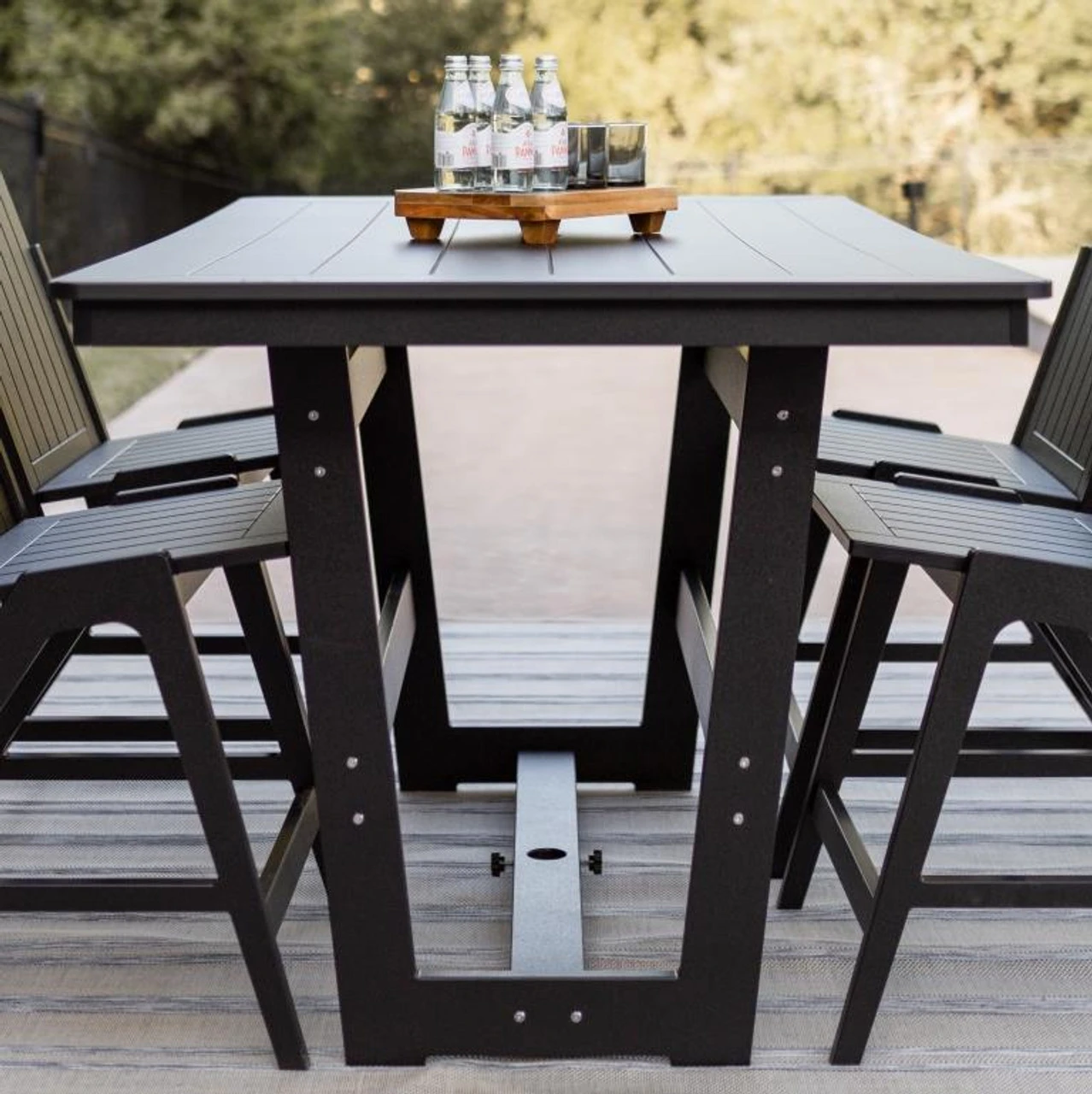 Our Berlin Gardens Kinsley Resin Dining Set includes: (2) Kinsley Counter Height Arm Chairs, (4) Kinsley Counter Height Side Chairs and (1) 40″ x 70″ Hudson Rectangular Dining Table. Shown in Matte Black. Seat cushions shown in these images are not included with this set but can be ordered individually. We do recommend for comfort that you order the optional cushions.