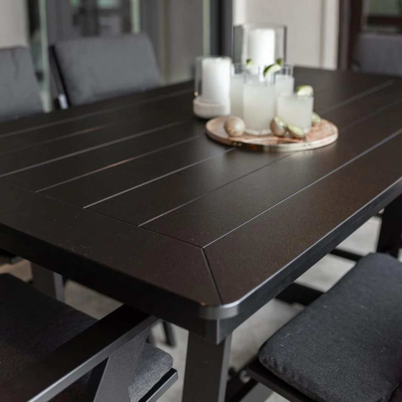 Our Hudson Table & Kinsley Chairs are made with a more dense poly material called Seaboard® allowing for a more narrow profile making this collection very sleek and modern!