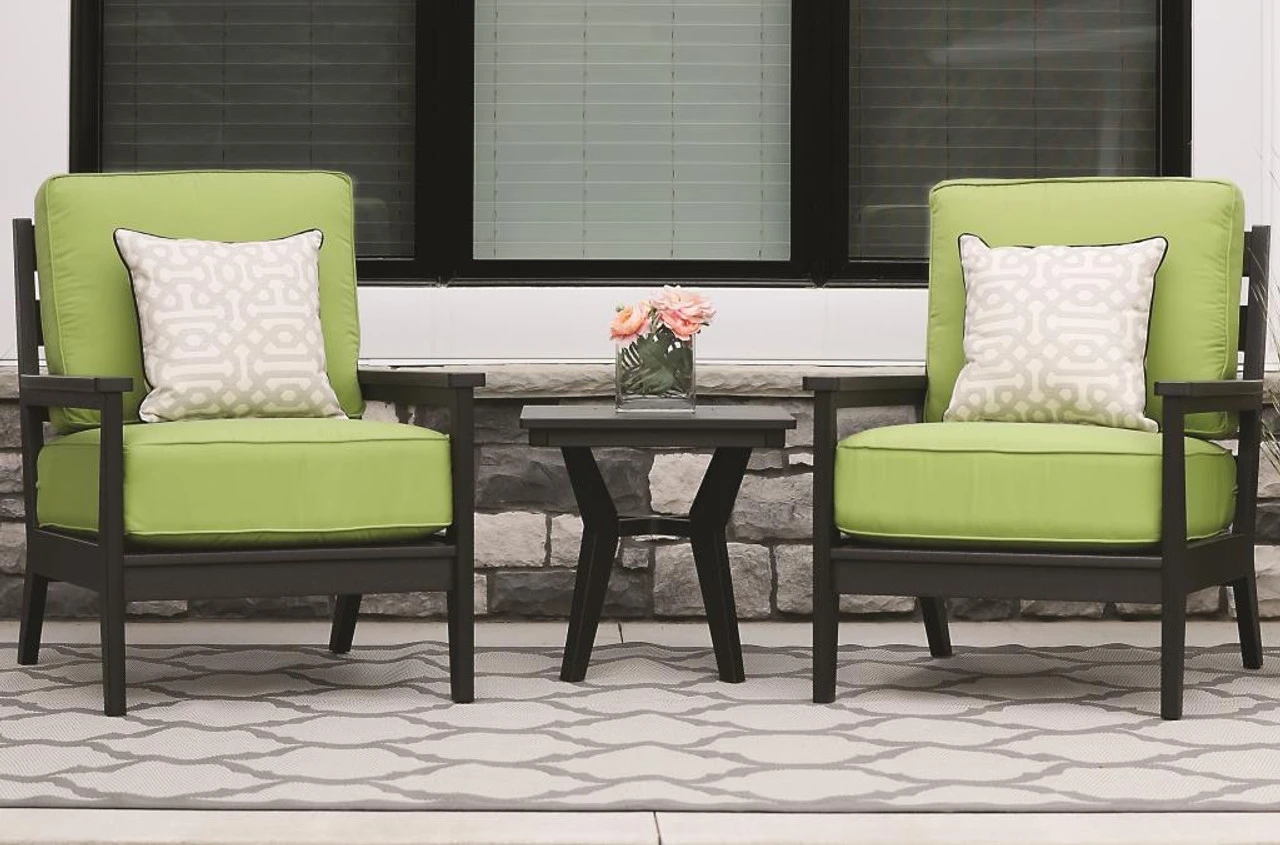 When the weather?s fine, you?ll spend even more time outside soaking up the sun with the Berlin Gardens Resin Mayhew Club Chair Patio Set from Outdoor Furniture Plus. Available in a broad palette of frame and fabric colors, this set includes two comfy Mayhew Club Chairs and a matching Mayhew End Table. Made of durable, 96% recycled polyresin with all-chrome stainless steel hardware, these pieces will provide years of outdoors enjoyment.