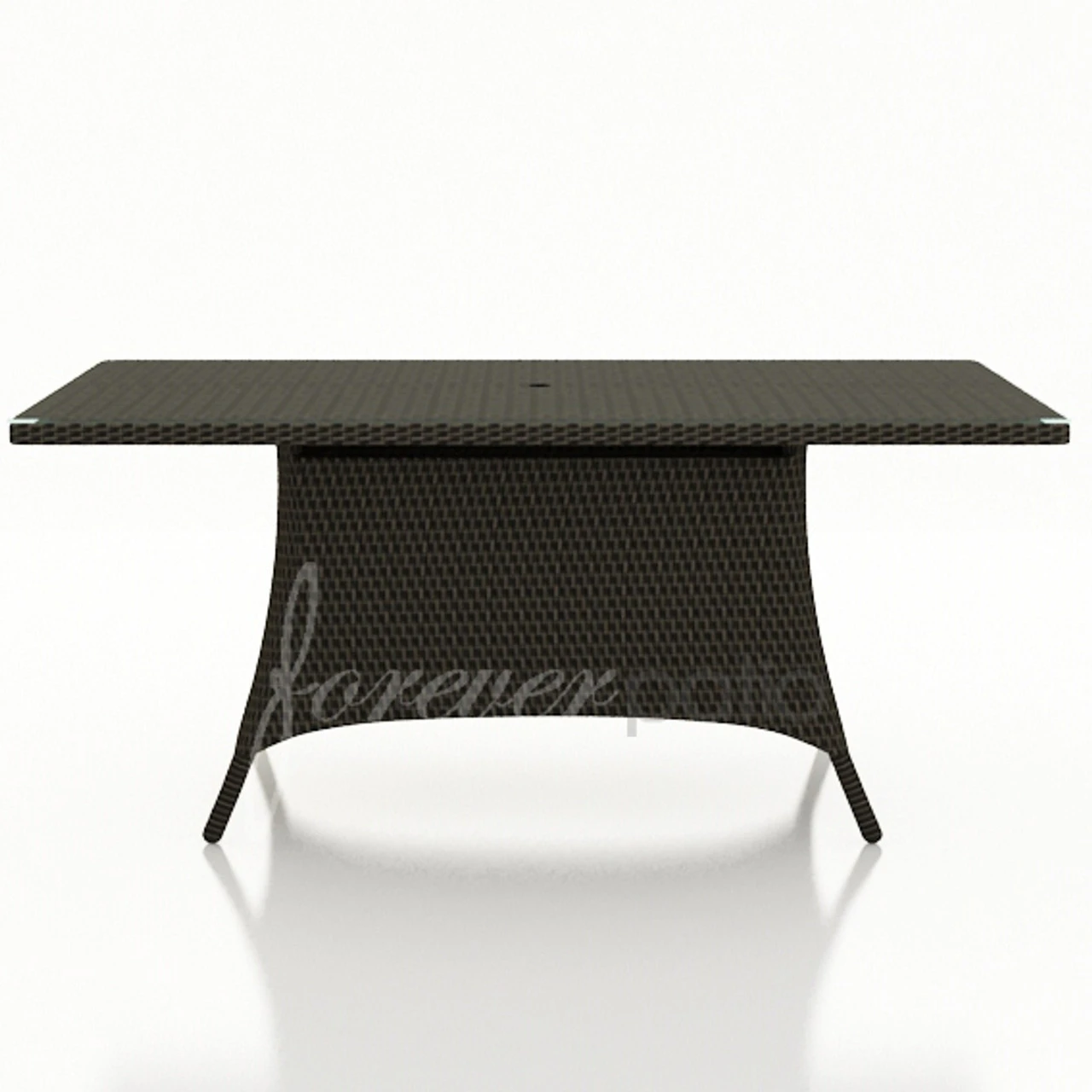 The sleek lines of the Forever Patio Universal Wicker dining table in a 72-inch by 42-inch rectangular size is available with glass top from Outdoor Furniture Plus. This weather-resistant wicker patio furniture piece on a durable powder-coated aluminum frame is equally stunning for use indoors or outside. Check out the rest of this must-have collection for available dining chair options.