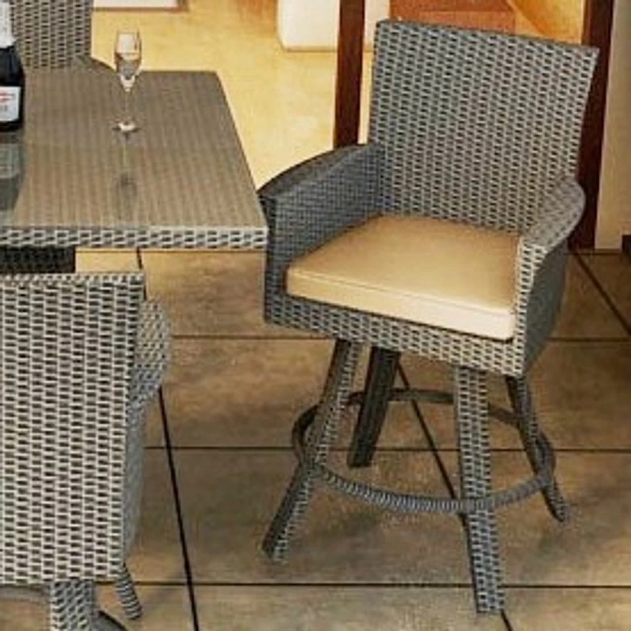 Update your outdoor counter with Forever Patio Universal Swivel Counter Stools from Outdoor Furniture Plus. The wicker swivel counter stool features a fully cushioned seat for all-day comfort. Sit back and enjoy a drink or spend your entire day at your backyard counter. The Hampton outdoor wicker swivel bar stool has a mid-rise back, a footrest and full arms for maximum comfort. The wicker exterior is available in your choice of finish and all materials used on the stool are weather-resistant, including the Sunbrella fabric used on the cushion. Wicker swivel counter stools also qualify for free shipping.