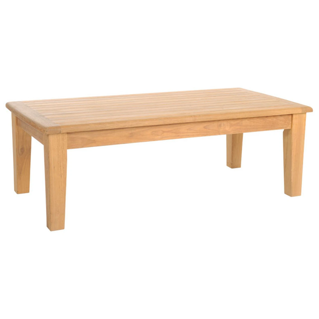 With this HiTeak Grande Coffee Table from Outdoor Furniture Plus, you can enjoy the same comforts and style of your living room on your patio or porch. This elegant table features a slatted design made from Burmese teak wood. This wood is noted for its natural weather-resistance and superior strength. Its even been polished to create a smooth, sleek surface for the food and drinks you enjoy outdoors.