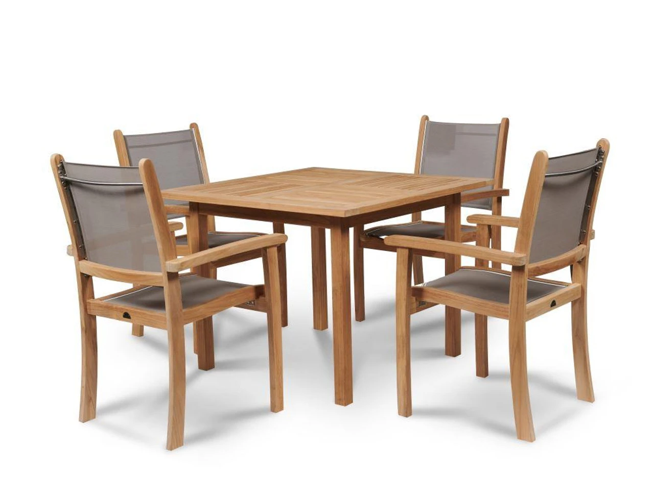 Practicality and high-grade teak have starring roles with our HiTeak Pearl 5 Piece Square Table With Stacking Arm Chair Set. This patio table set from Outdoor Furniture Plus provides the perfect place for dining, game nights, and friendly conversations. Featuring a strong teak table and stacking arm chairs with supportive sling seats and backs, it offers easy storage and setup options when not in use. From your company’s patio to your home’s backyard, it gives you a comfy spot to catch up with others. Add a patio umbrella to make it even more enjoyable!