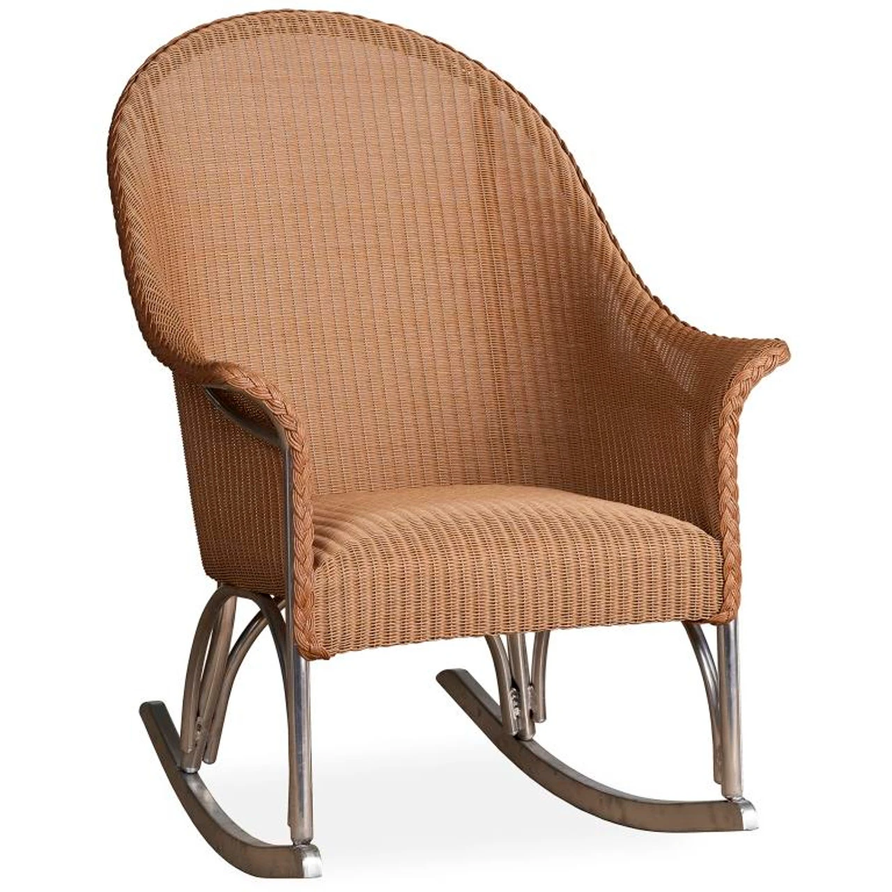 Timeless beauty. Time-tested materials. Time-consuming craftsmanship. We didn’t skimp on any part of the Lloyd Flanders All Seasons Padded Seat Hi Back Porch Rocker, so you have all of the time in the world to enjoy it. This seat from Outdoor Furniture Plus boasts a corrosion-resistant aluminum frame, all-weather wicker, and padding for extra comfort. Its gently curved back and sloping arms deliver contemporary charm as well as a supportive design. Want a more unique look? Choose from dozens of wicker colors. And don’t forget to add a wicker side table to go with it, too.