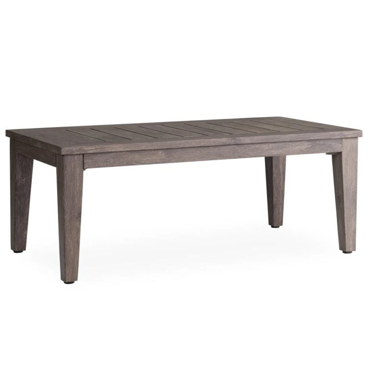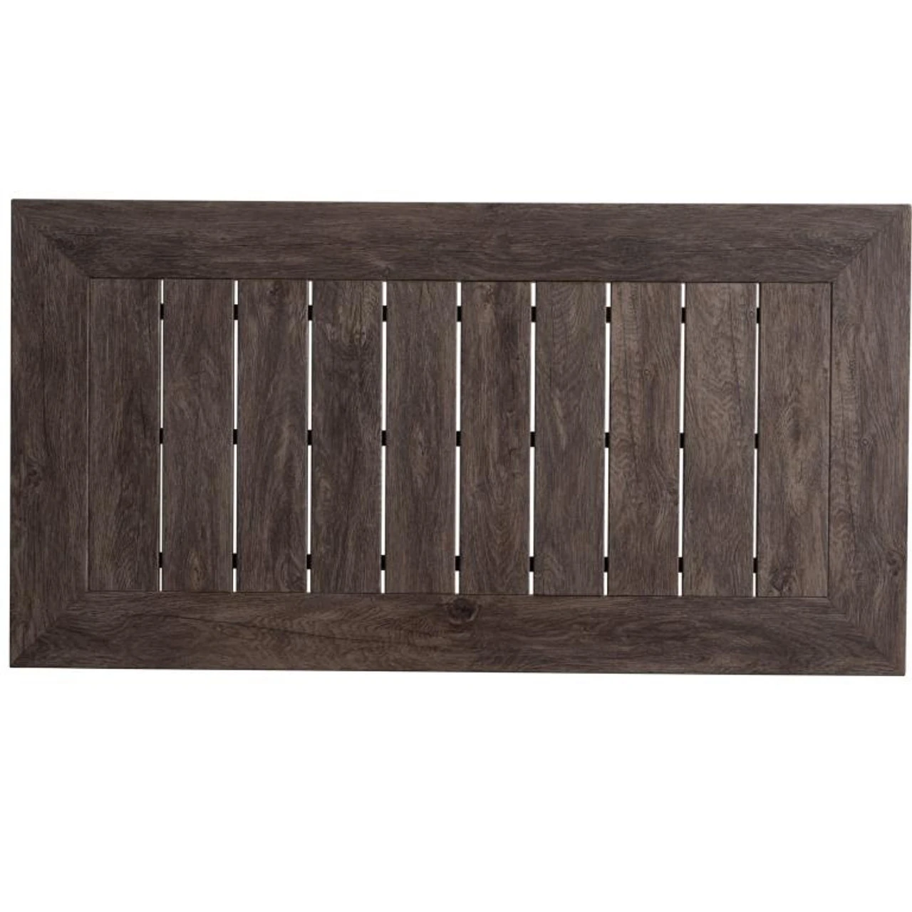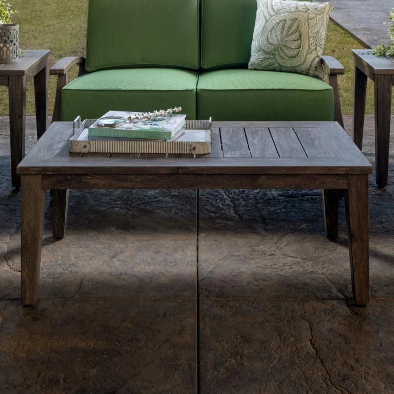 Here’s a contemporary outdoor accent that’s fashionable and functional. The Lloyd Flanders Frontier 45″ Aluminum Cocktail Table is thoughtfully engineered with a corrosion-resistant aluminum frame and faux wood look. Other details include tapered legs, a slat top that lets water drain, and a long-lasting finish. It’s the perfect spot to set your drinks, display patio decor, or put your book on while you take an al fresco nap. Pair with the matching end table from Outdoor Furniture Plus to complete the scene.