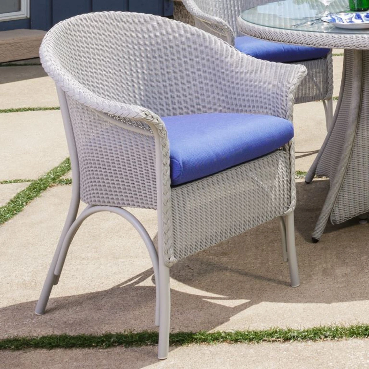 Nothing is quite as charming as a wicker chair. The Lloyd Flanders Universal Heirloom Loom Dining Armchair 1×1 steps up the level of sophistication with its flared back and tight, 1×1 weave pattern. Imagine sitting here enjoying a meal with friends! This patio seat from Outdoor Furniture Plus boasts a corrosion-resistant welded metal frame. Natural wicker is then woven, wrapped, and finished by skilled artisans. Select between almost two dozen wicker colors and 100+ cushion designs, including floral, classic, and geometric looks. Add a wicker dining table to finish your space!