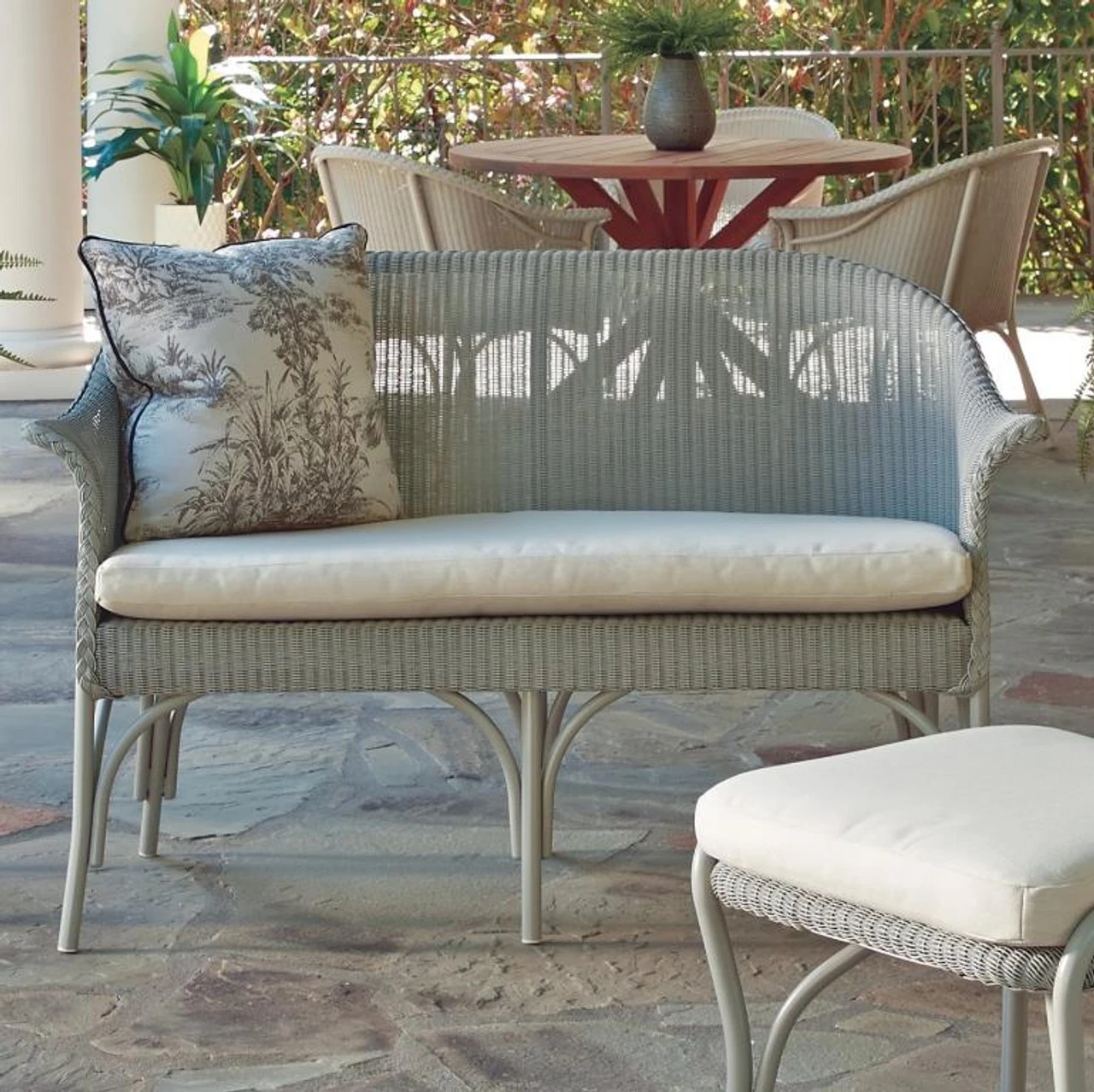 If global-modern wasn’t a style before, it is now! The Lloyd Flanders Loom All Seasons Settee flaunts a contemporary profile and all-weather wicker construction. With a durable aluminum frame and plush seat cushion, this comfortable piece from Outdoor Furniture Plus gives you a great spot to relax. We’re talking sipping drinks poolside or reading a book in the fresh air. To create a unique look, choose from dozens of wicker colors and over 100 fabric designs. You can also shop for a wicker side table as the ideal complement.