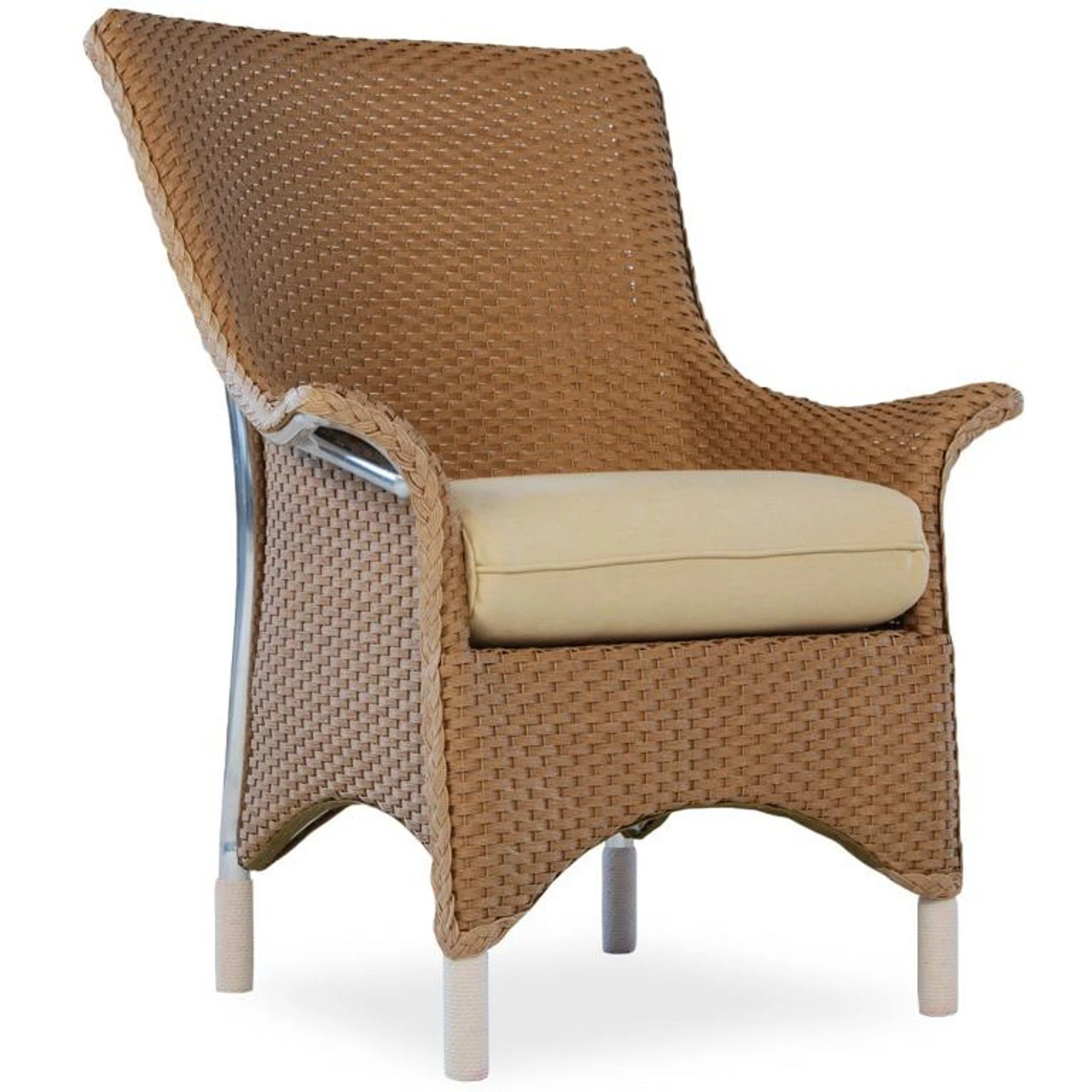 With its sophisticated apron and flared arms, the Lloyd Flanders Loom Mandalay Dining Armchair imparts casual elegance to any meal. In other words, you’ll elevate your patio dining with this stylish patio seat from Outdoor Furniture Plus. It’s certain to last a long time thanks to a resilient aluminum frame and comfortable cushion covered in all-weather poly fabric. Select from 20 wicker colors and dozens of fabric designs to create a unique piece of outdoor furniture. All that’s missing is the perfect outdoor dining table to go with it!