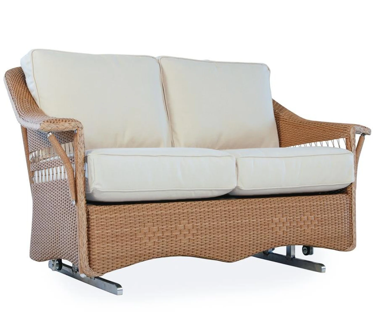 Slow down everyday life by kicking back with the charming Lloyd Flanders Loom Nantucket Rocker Glider Lounge Set. Designed to give you a place to relax with your partner or friends, it’s the ideal addition to any patio, porch, or deck. This set from Outdoor Furniture Plus features aluminum frames, durable wicker, and all-weather cushions. Want to personalize the look? There are thousands of possible wicker color and cushion design combinations. Don’t forget to add a patio rug underneath it all!