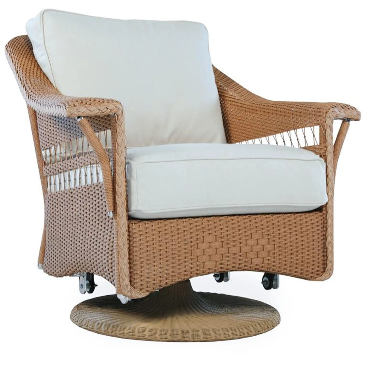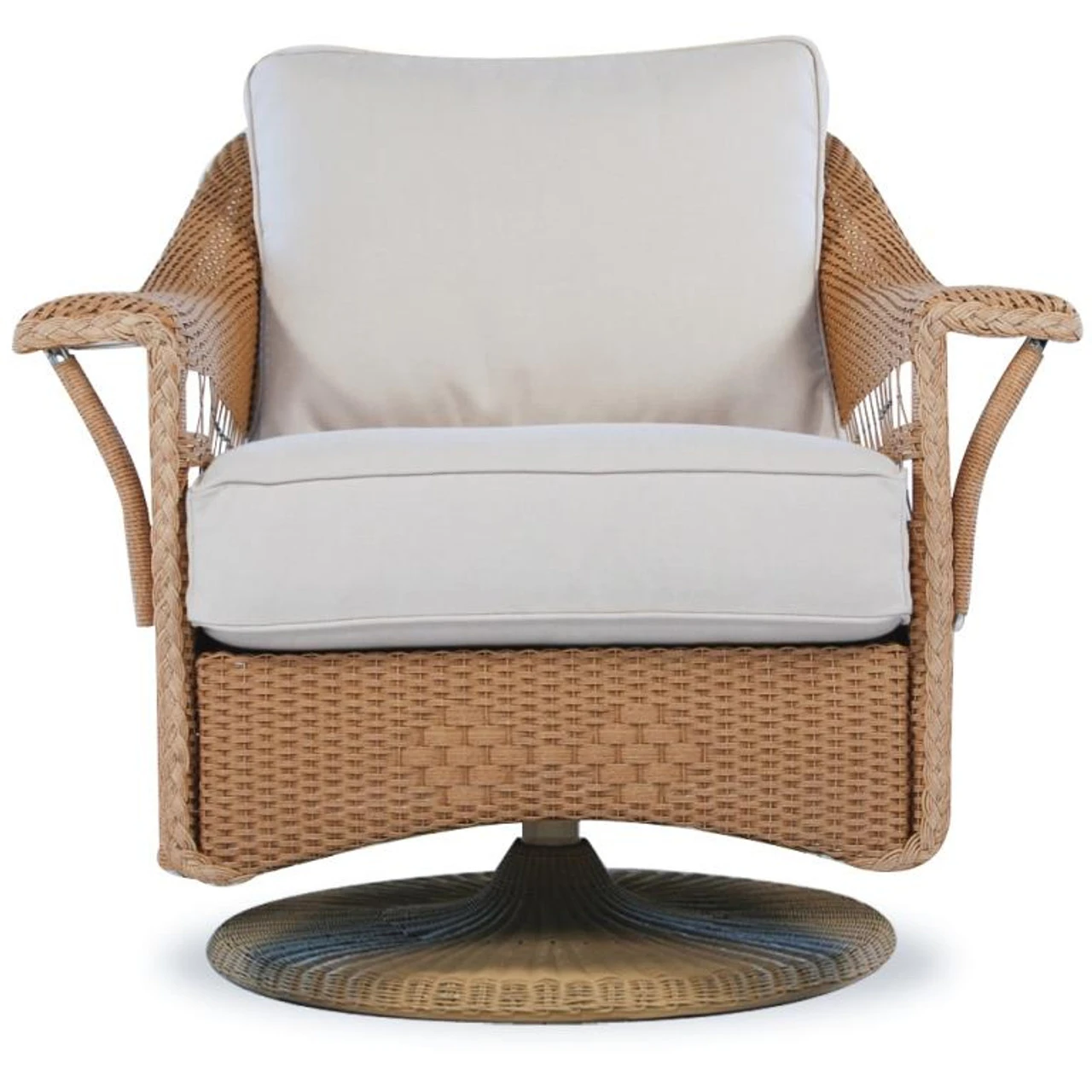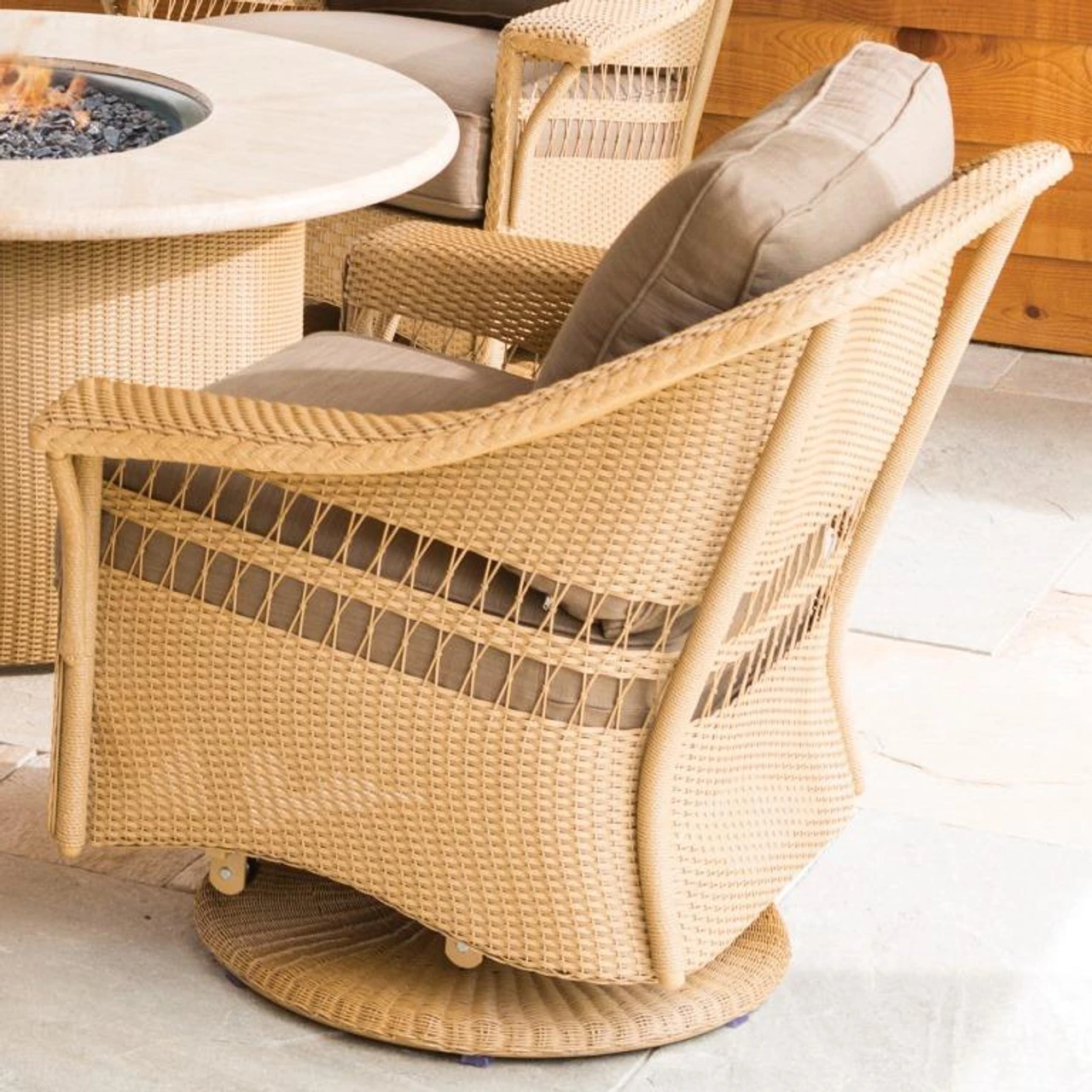 Breezy and global, the Lloyd Flanders Loom Nantucket Swivel Glider Lounge Chair provides a go-to destination for relaxation. It boasts a fully welded metal frame and woven natural wicker in 20 colors, from neutral to bold. This timeless patio seat from Outdoor Furniture Plus is ideal for taking it easy outside. Gently sloping armrests and an elegant apron finish the piece with plenty of charm. Add a side table next to it for extra functionality, whether you’re unwinding by yourself or with friends and family.
