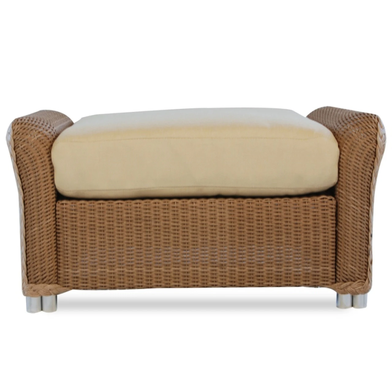 The Lloyd Flanders Loom Reflections Ottoman With Cushion is at the height of versatility and global-inspired style. This functional accent features a corrosion-resistant aluminum frame and your choice of natural fiber wicker color. It comes with a plump cushion that’s covered in a long-lasting poly jacket and available in multiple fabric colors. Whether you need a relaxing footrest or extra seat, this wicker ottoman with a cushion from Outdoor Furniture Plus lets you put your personal touch on any al fresco space! Combine with other pieces in this collection for a complete look.