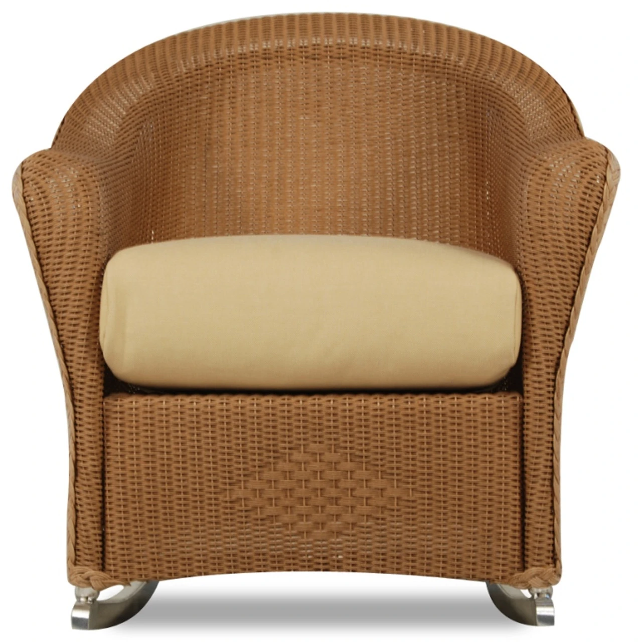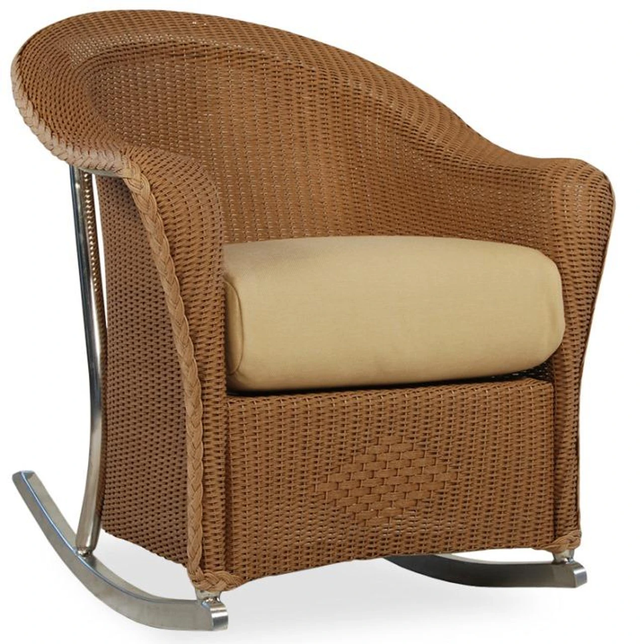 This isn’t your grandma’s rocking chair. The Lloyd Flanders Loom Reflections Porch Rocker steps up your outdoor game with a sloping back and slightly flared, ample armrests. Other features include a corrosion-resistant aluminum frame, your choice of natural fiber wicker colors, three back cushion styles, and numerous fabric tones. Whether you want to sip lemonade in a sunroom or people-watch outside in style, this patio seat from Outdoor Furniture Plus lets you put your personal touch on any al fresco space! Think about adding a side table next to it for a functional final detail.