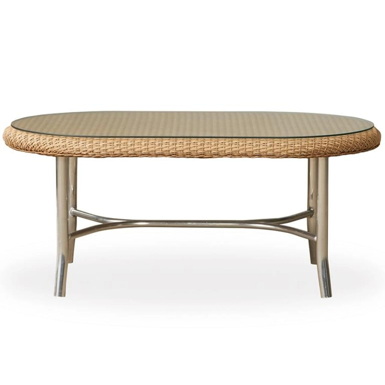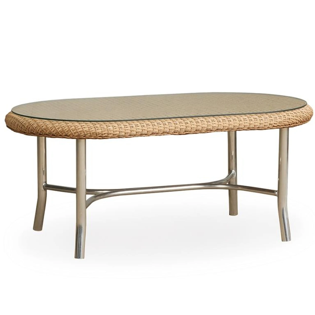 Lloyd Flanders Lloyd Universal Loom Oval Cocktail Table with Mini-Random weave pattern.