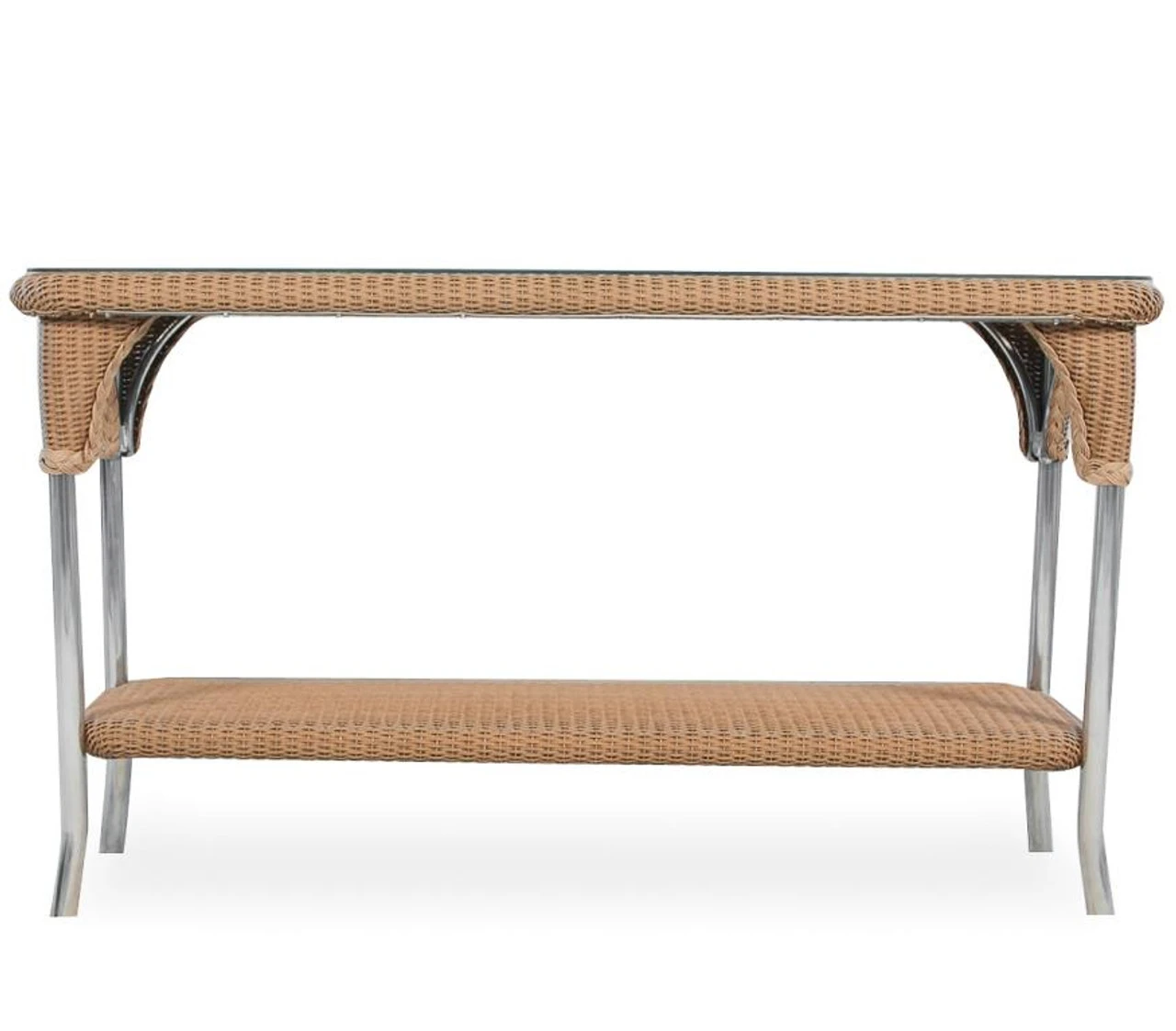 Need a place to set your drink, laptop, or book while outside? The Lloyd Flanders Universal Loom 52″ Console Table is the practical, stylish solution. This graceful patio accent table from Outdoor Furniture Plus boasts a durable aluminum frame. Natural wicker is then woven, wrapped, and finished by skilled artisans. Made in the USA, it comes with a lay-on glass top, too. Select between almost two dozen wicker colors for a look that’s totally you. Then add a wicker chair to finish your space.