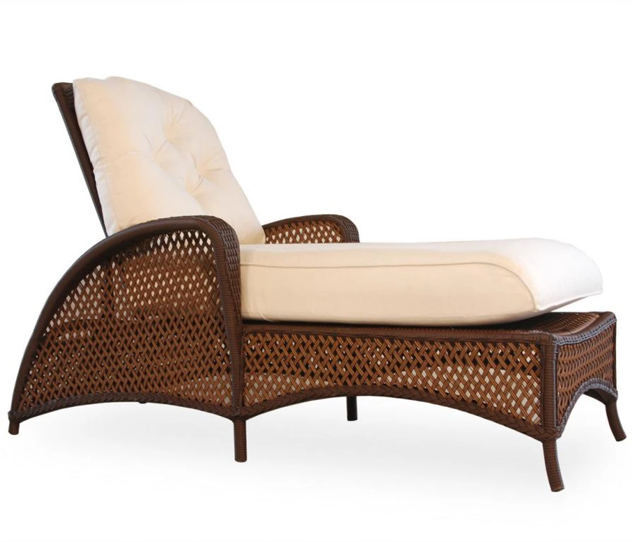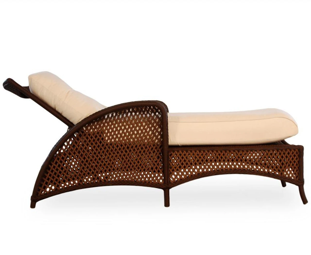 Grand Traverse Deep Seating Chaise Lounge Chair shown in Caramel with a Fife Vellum Cushion (Main Image).