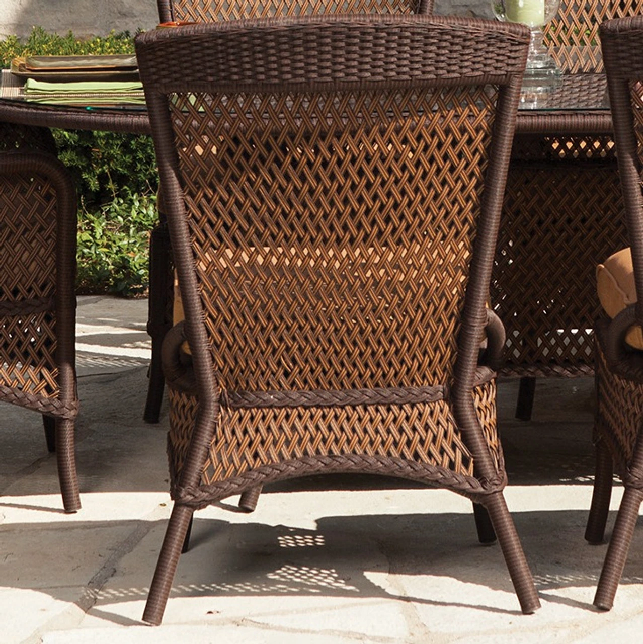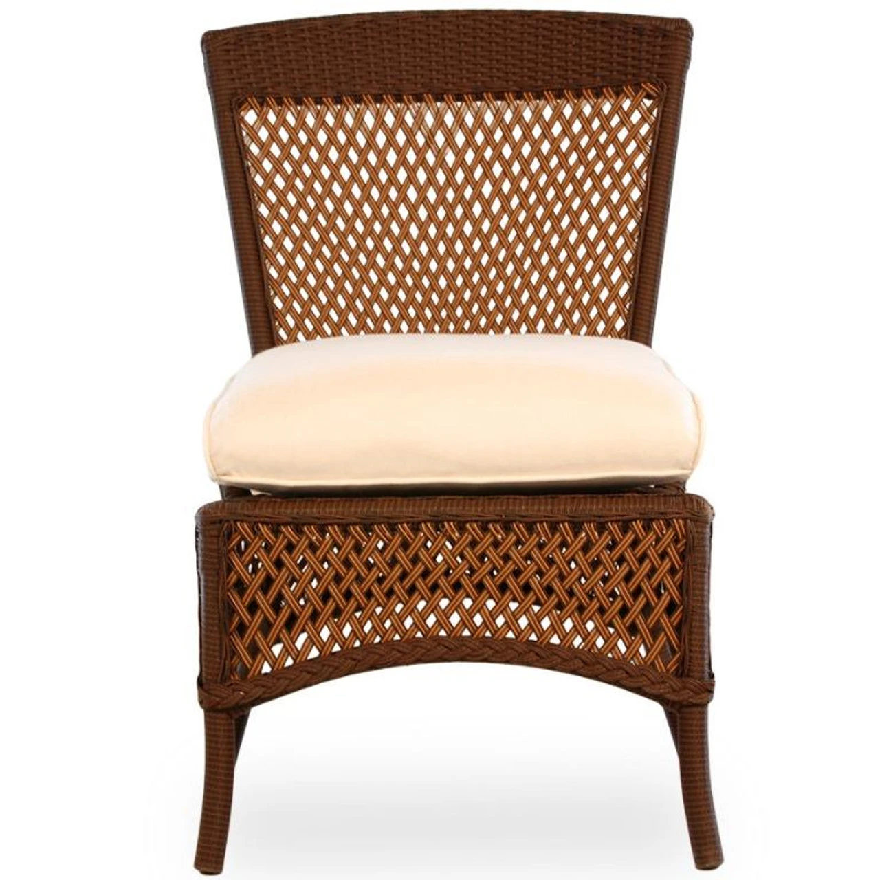 Light and inviting courtesy of its open weave design, our Lloyd Flanders Vinyl Wicker Grand Traverse Dining Side Chair is the epitome of classic, relaxed dining. This charming patio seat from Outdoor Furniture Plus features a long-lasting welded aluminum frame and UV-resistant vinyl wicker that lends a timeless quality. You’ll feel comfy thanks to its plush cushion covered in a durable, synthetic jacket. Better still? You can choose from different wicker colors and fabric hues to personalize the look. Other elegant details include a graceful apron and flared backrest for plenty of support.