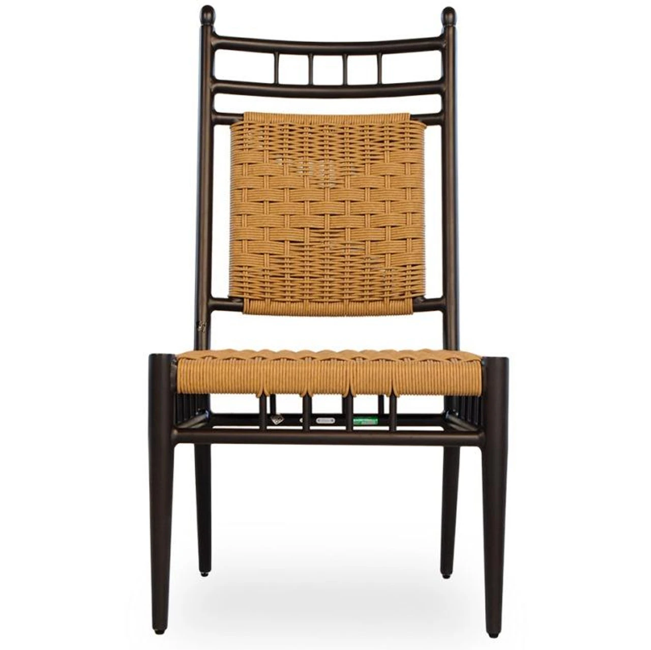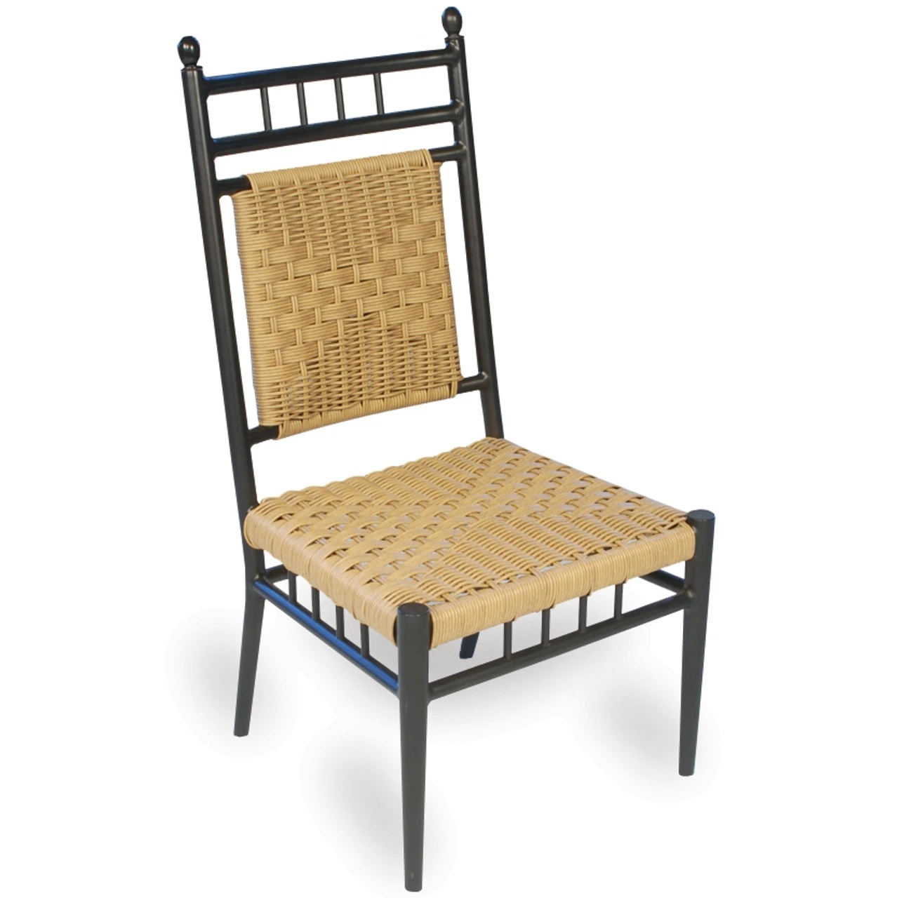 The Lloyd Flanders Vinyl Wicker Low Country Woven Dining Side Chair is pleased to seat you. This charming chair from Outdoor Furniture Plus features a welded aluminum frame for long-lasting strength and beauty. Other details include tapered legs, elegant finials, and all-weather vinyl wicker in a bow tie basket weave pattern on its seat and back for outstanding support. Get as many as you need and consider adding seat pads for an extra dose of comfort.