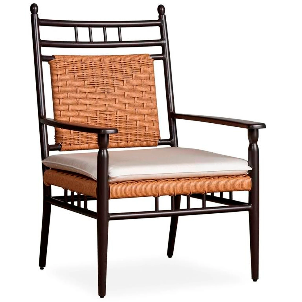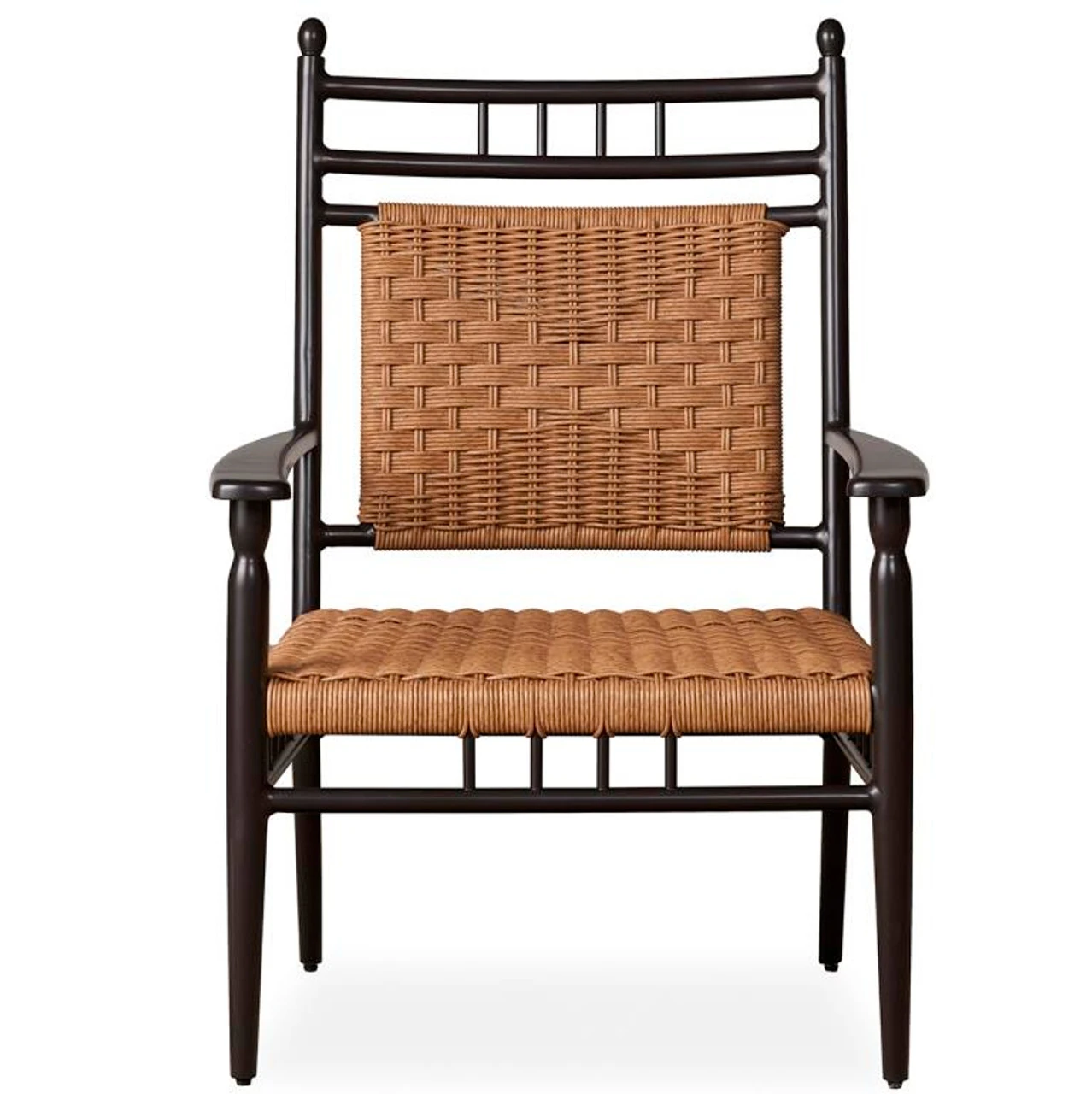 The Lloyd Flanders Vinyl Wicker Low Country Woven Lounge Chair is pleased to seat you. Our charming chair from Outdoor Furniture Plus features a welded aluminum frame for long-lasting strength and beauty. Other details include stately armrests, tapered legs, elegant finials, and vinyl wicker in a bow tie basket weave pattern on its seat and back. Add an optional seat pad for an extra dose of comfort and pair with one of our side tables.