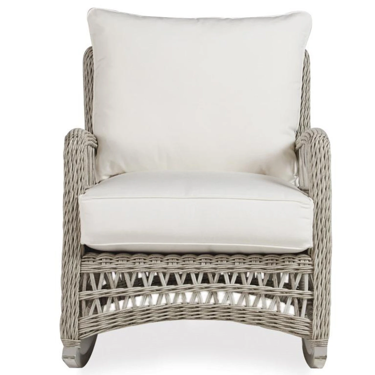 Soothe your mind and body with the Lloyd Flanders Vinyl Wicker Mackinac Rocking Chair. With its coastal style and weather-resistant fabric options, this piece from Outdoor Furniture Plus provides a tranquil escape from the hustle and bustle of everyday life. As you rock gently back and forth, let the stress of the day slip away and bask in the beauty of your outdoor living space. Add an ottoman for a place to prop up your feet!
