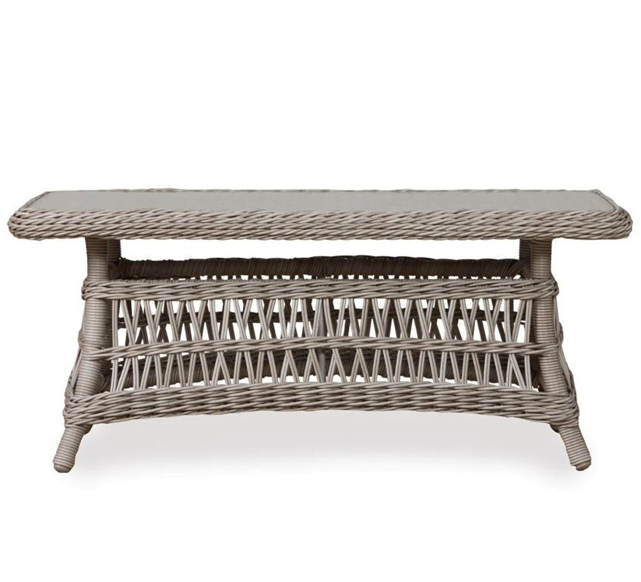 Mackinac Cocktail Table shown in Putty with a Wicker Top & Lay On Glass.