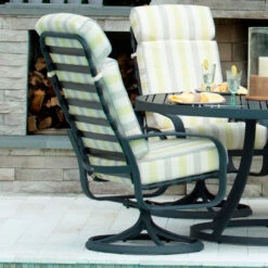 Woodard Aluminum Cortland Cushion High Back Swivel Rocking Dining Arm Chair