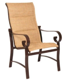 Woodard Aluminum Belden Padded Sling High Back Dining Arm Chair