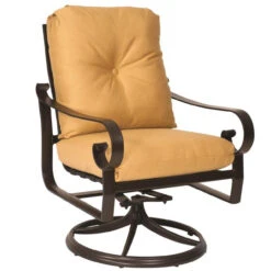 Woodard Aluminum Belden Padded Sling High Back Swivel Rocking Dining Arm Chair