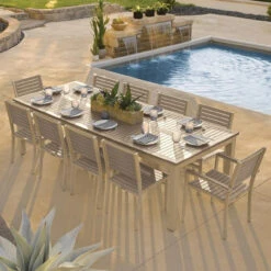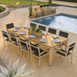 Oxford Garden Travira Tekwood 10 Seat Rectangular Dining Set – July 4th Sale – Good ’til The 8th!