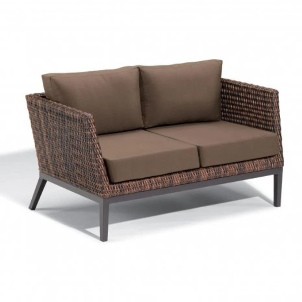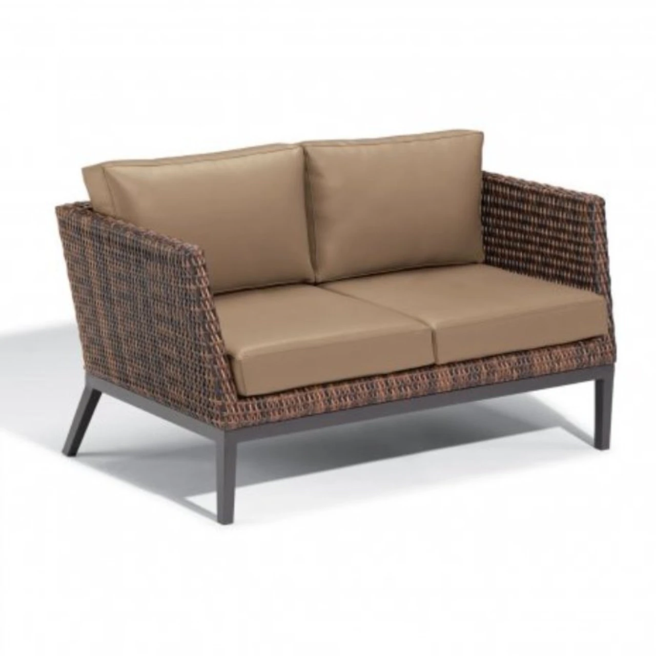 You’ll love the Oxford Garden Salino Wicker Outdoor Loveseat from Outdoor Furniture Plus. Combining casually sophisticated style with plush comfort, this loveseat is easy to care for and able to withstand the weather. Its wicker is made of all-weather resin, and the fabric is Nautica synthetic leather, the same material used for boat upholstery. Choose from two colors for the plump cushions.