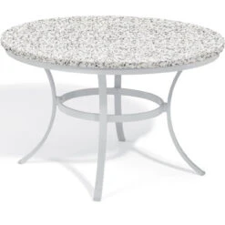 Sophisticated yet simple, the Oxford Garden Travira 5-Piece Lite-Core Dining Set with 48 Round Table from Outdoor Furniture Plus gives you everything you need to beautify practically any outdoor seating space. The centerpiece of this set is a 48-inch round table that boasts a powder-coated aluminum frame and a Lite-Core top that combines the looks and beauty of natural granite with the light weight of aluminum. Four lightweight but sturdy armchairs complete the set. Each chair boasts aluminum frames and polystyrene-derived Tekwood seats, backs and arm caps that have the look of wood but don’t weather and require minimal maintenance.
