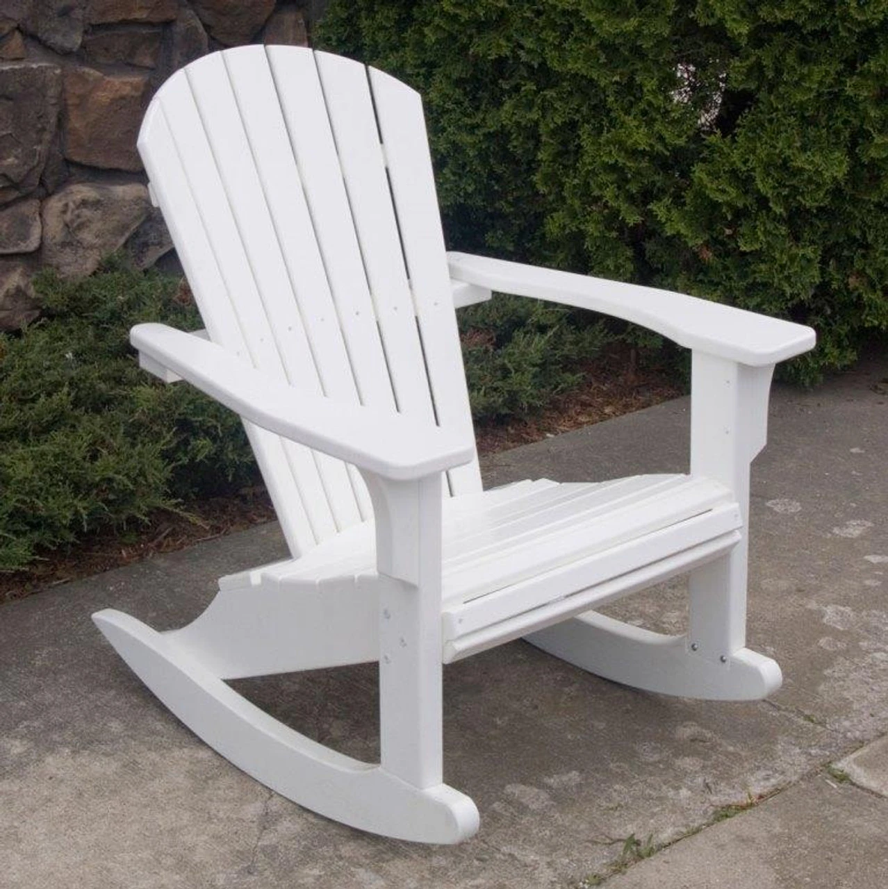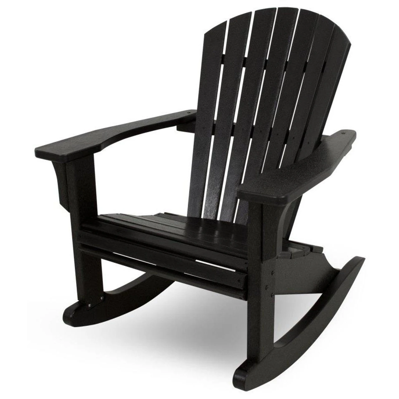 A rocking chair is a traditional symbol of relaxation, to slow down life’s hectic pace and indulge in its gentle swaying. The POLYWOOD® Seashell rocker chair from Outdoor Furniture Plus is a thoroughly modern take on a time-honored classic. It has the look of finely crafted wood with a wide backrest for comfortable support and gently angled seat that cradles the body. However, instead of being made from wood, this fanned back rocking chair is constructed of high-density polyethylene (HDPE) using recycled plastic jugs and other waste material. This results in an eco-friendly and extremely durable resin seashell chair that far surpasses wood in its weather resistance. Choose from a black or white frame color and various fabrics for optional cushions. Also available in the Outdoor Seashell Collection is an Adirondack chair, a seashell dining chair and an ottoman. If you’re looking for a POLYWOOD® rocking chairs sale, see the POLYWOOD® Collections.