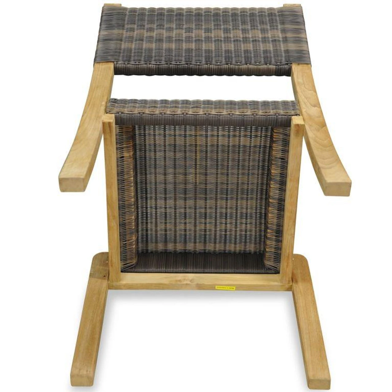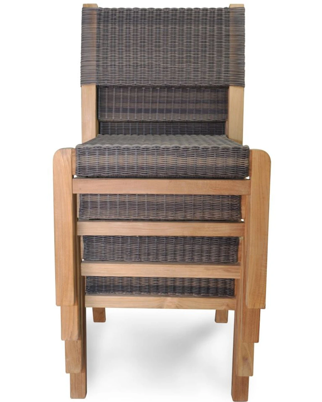 Elevate the look of your patio with the sophistication, global appeal, and contemporary design of these chic dining chairs from Outdoor Furniture Plus. From dinner with friends to game nights with family, the Regal Teak Wicker Stacking Dining Side Chairs are an essential part of all your al fresco activities. Crafted of teak with a classic profile, this seating option boasts a woven wicker seat and back for timeless style. The open back design allows for optimal air flow and this piece is stackable for easy storage. Simply choose the right dining table to complete the look!