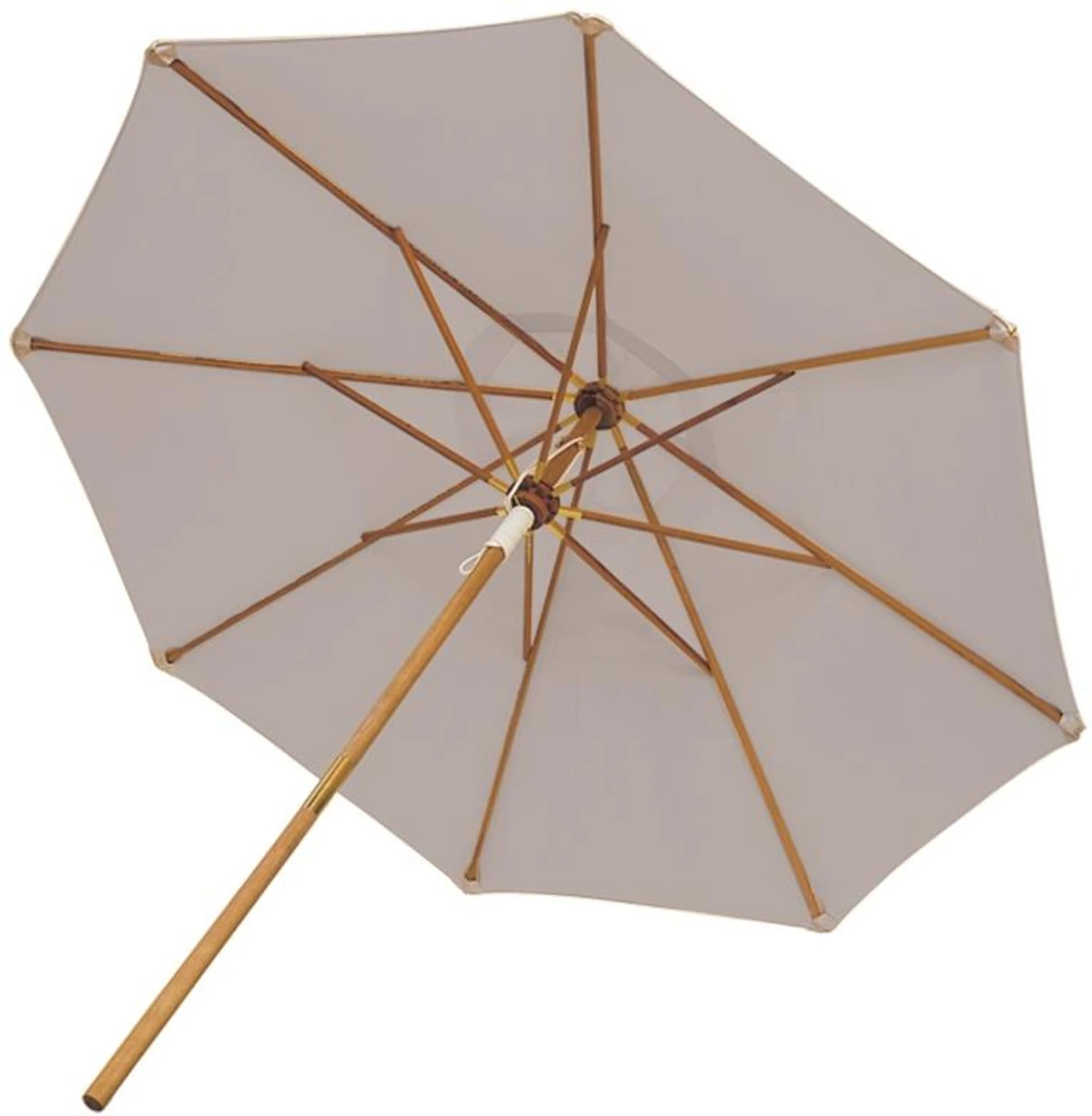The Teak 10′ Deluxe Market Umbrella from Outdoor Furniture Plus has been built to stand up to its demanding job of protecting the people under it. Made of grade A teak, the pole is UV and weather resistant. This teak market umbrella is made of polyspun polyester fabric coated to repel dirt and rain, while leather straps have been placed at strategic reinforcement points for extra strength. These sturdy 10′ patio umbrellas are available in your choice of navy, green and off white.