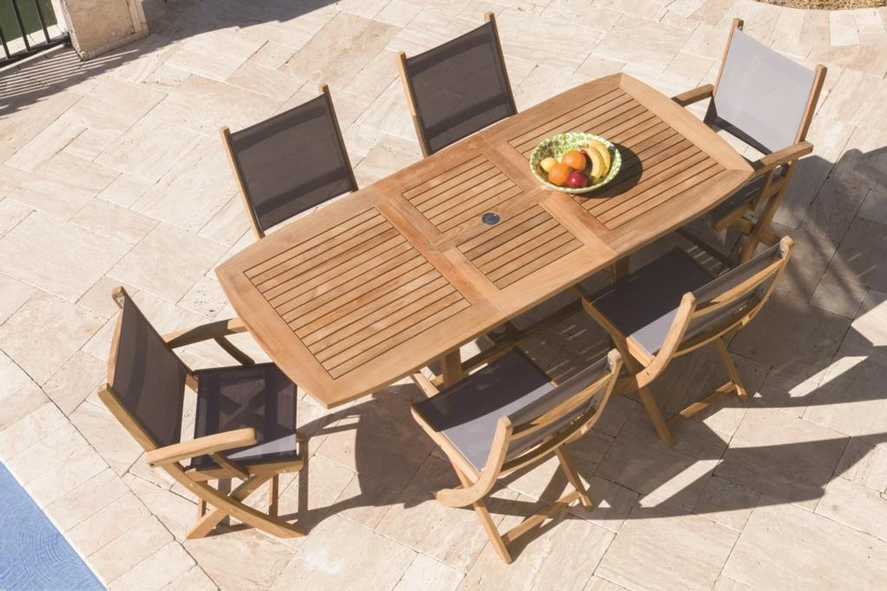Royal Teak 60″ – 78″ Oval Family Expansion Table Dining Set with 6 SailMate Chairs