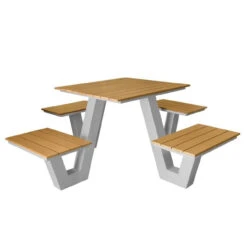 This teak bar height set includes (2) Admiral Bar Chairs & (1) Admiral 45″ Dia Round Drop Leaf Bar Table.