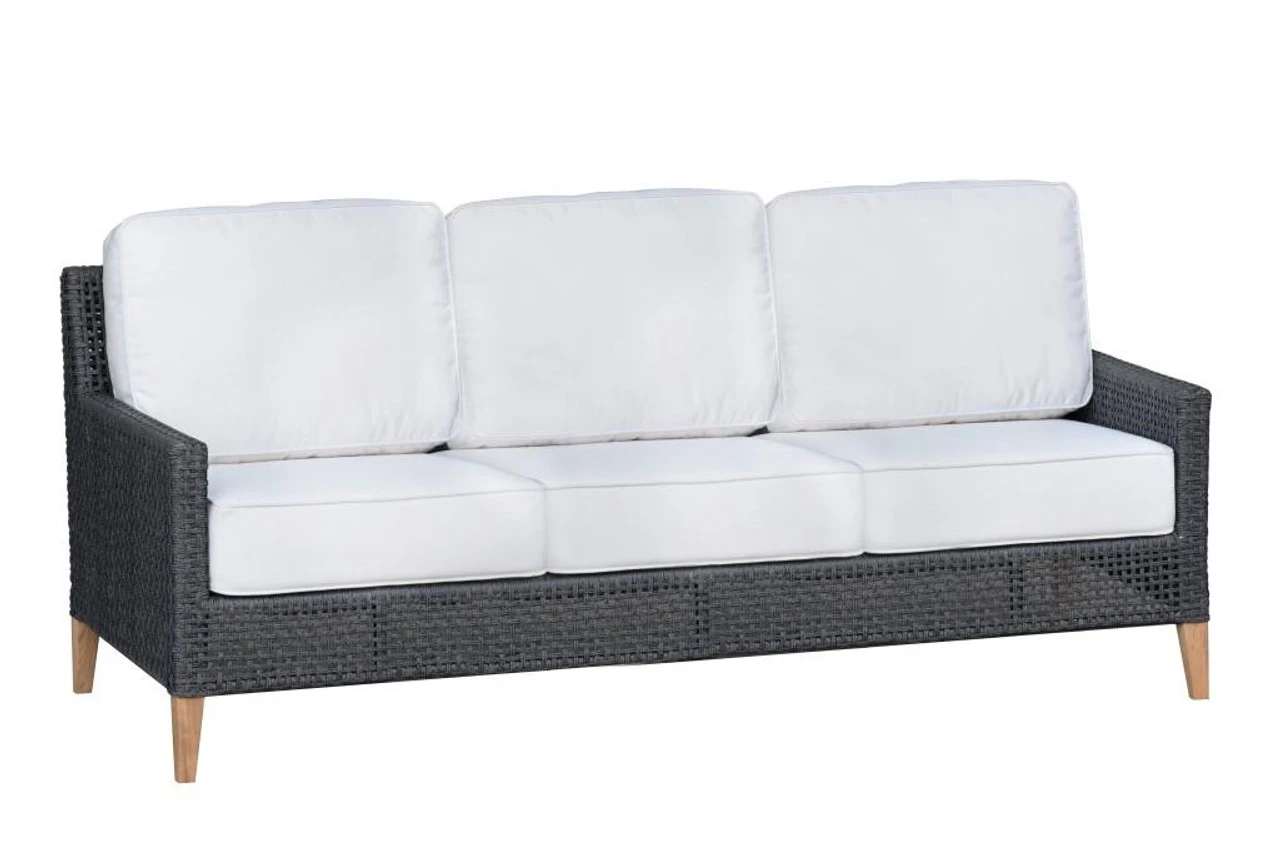The Royal Teak Cannes Wicker Deep Seating Sofa is a true masterpiece of style and comfort, crafted with the finest materials to elevate your outdoor living space. The polished smooth teak frame and durable Sunbrella fabric in a variety of colors come together to create a sofa that is both functional and fashionable. Sit back and relax as you bask in the beauty of nature, enjoying the ultimate comfort of this luxurious sofa from Outdoor Furniture Plus. Add a side table next to it to complete the scene!