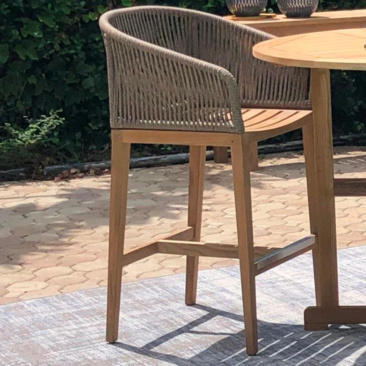 The rope used here is a resin nylon spun/wrapped around the wicker frame. Quick drying and no need for additional seat cushions.
