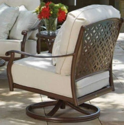 Woodard Aluminum Cayman Isle Cushion High Back Swivel Rocking Dining Arm Chair