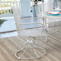 Woodard Wrought Iron Tucson High Back Swivel Rocking Dining Arm Chair (Set Of 2)