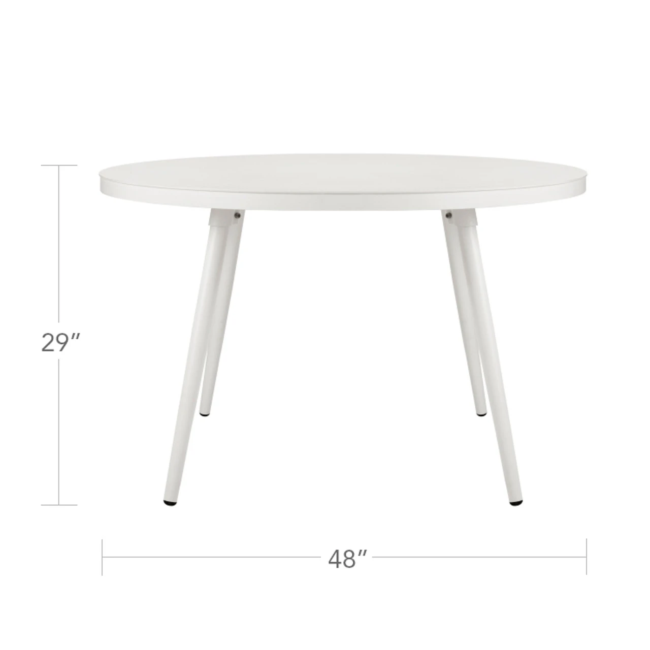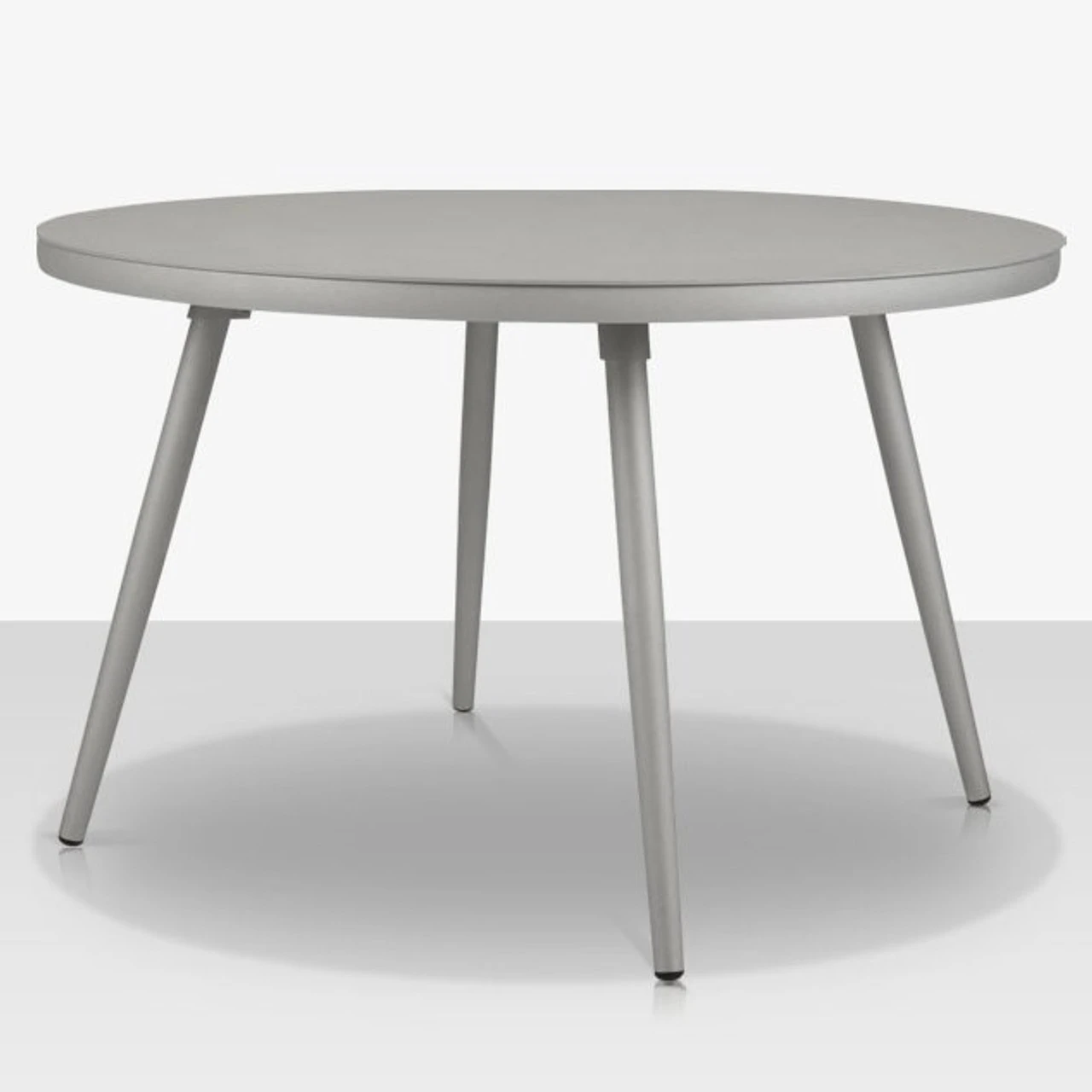 Simple, stylish, and contemporary, the Source Furniture Aria Round Dining Table from Outdoor Furniture Plus is a masterclass in practicality and chic good looks. Made from aluminum thats powder-coated for extra strength, our table gives you a functional focal point for your patio or deck. With angled, tapered legs that are easy to assemble, nylon glides on the feet to prevent scratching, and a neutral tone, this piece lets you stress less and easily add it to other accents. Explore our huge collection of dining chairs to finish the scene.