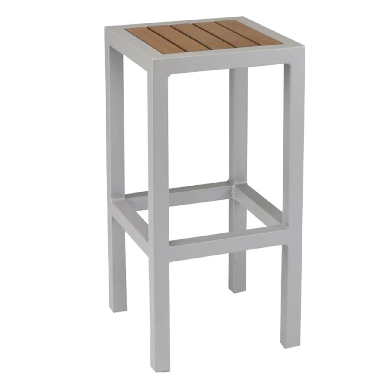Flaunting clean lines, timeless good looks, and a slat-style seat thats incredibly comfortable, the Source Furniture Napa Bar Stool is sure to be an instant favorite. This lightweight slat seat bar stool from Outdoor Furniture Plus features a powder-coated aluminum frame and four seat and frame color possibilities, so you can take your pick. Its Durawood seat resists fading and environmental stresses, so you can worry less about leaving it outdoors. Discover the ideal bar table to pair with it!