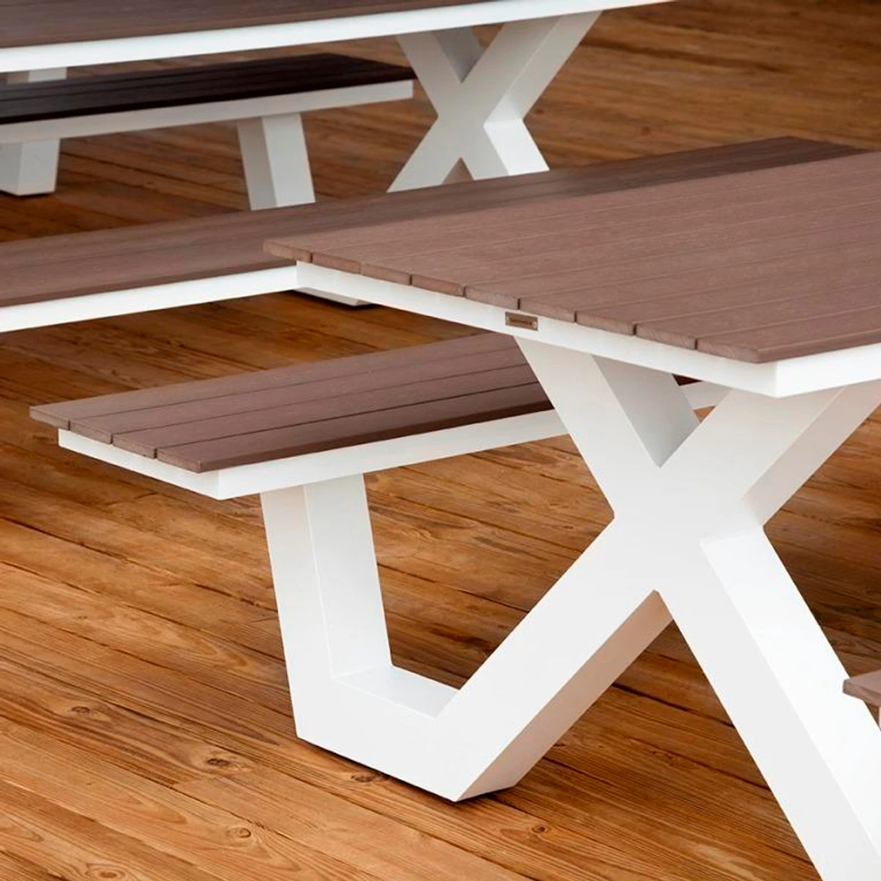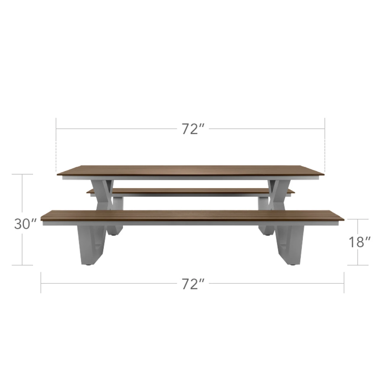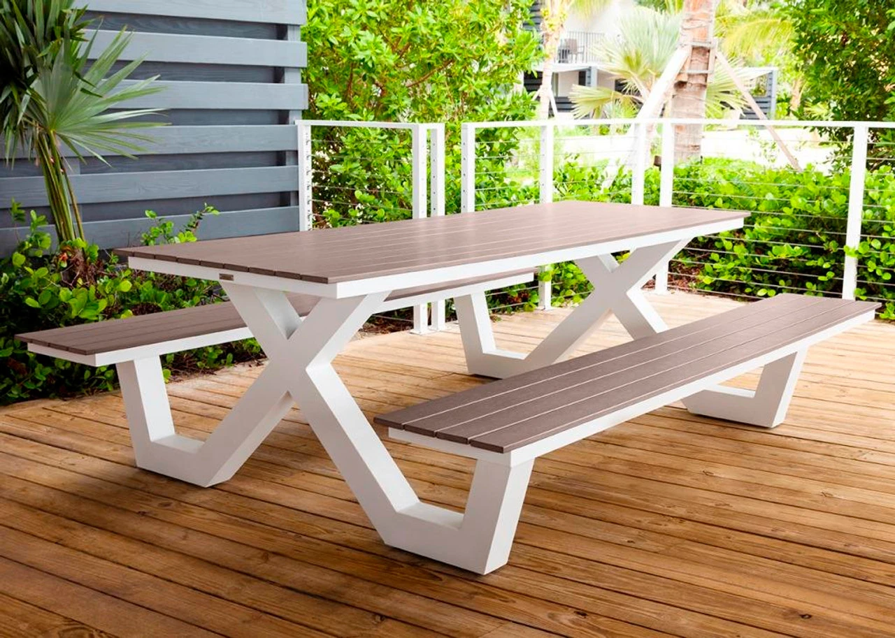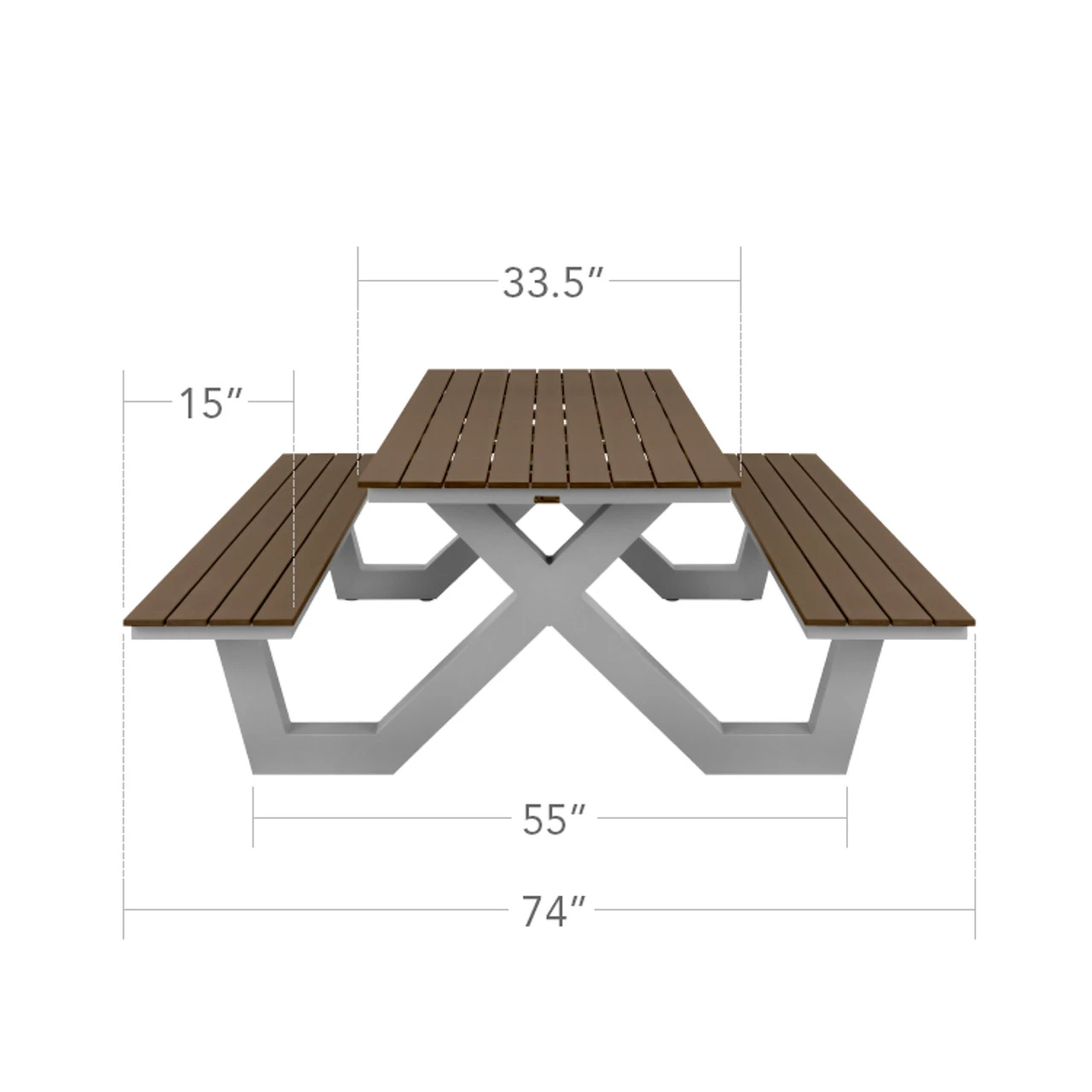 When it comes to eating outside with friends or family, nothing matches the timeless charm of an aluminum rectangular picnic table. Featuring a classic silhouette, the Source Furniture Vienna Traditional Picnic Table from Outdoor Furniture Plus combines practicality with style. It boasts a powder-coated aluminum frame with Durawood slats for long-lasting resilience and beauty. Breakfast to dinner, this picnic table with attached benches is a must-have for anyone who loves dining al fresco. Think about adding an umbrella for extra shade.