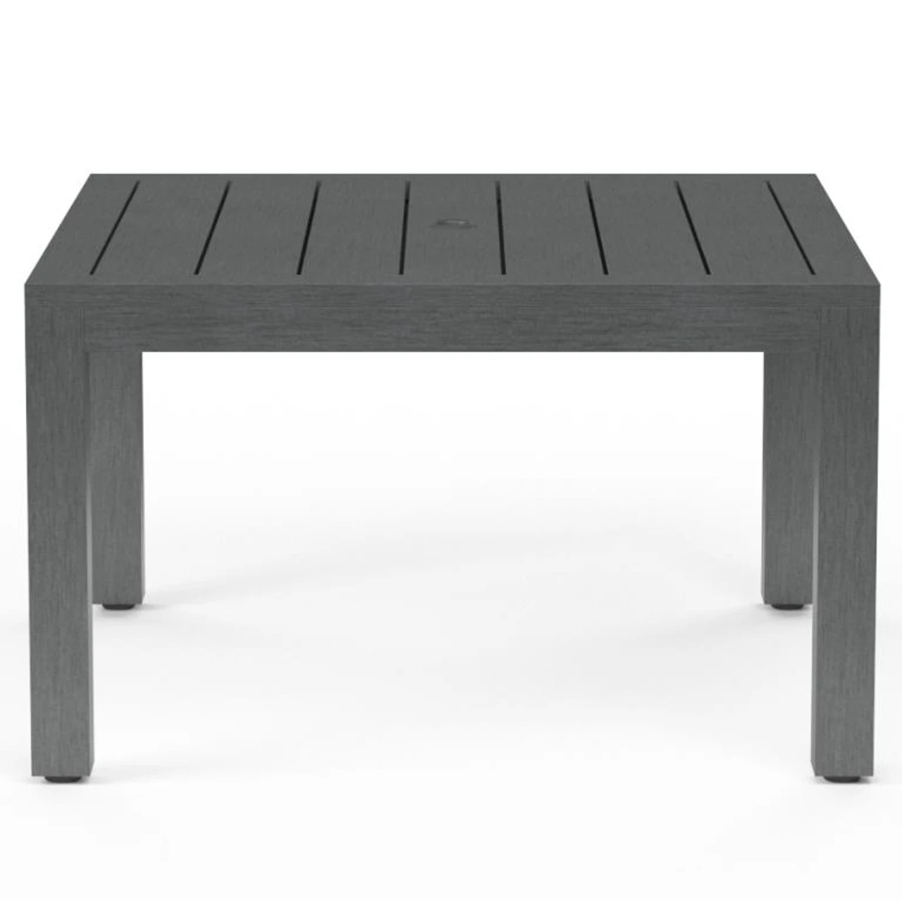 Sunset West’s Redondo 48″ Square Umbrella Dining Table in Slate Finish.