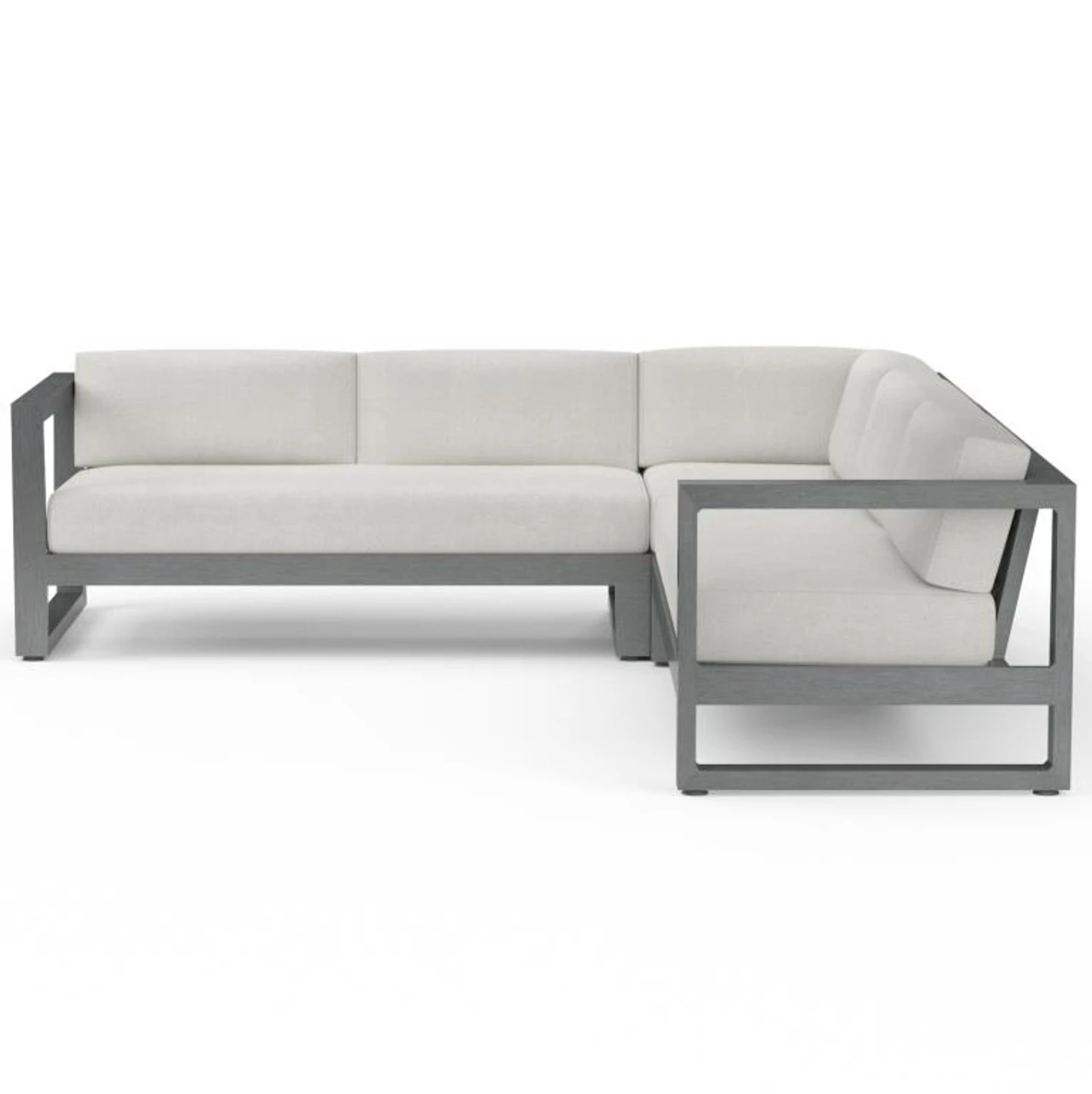 Welcome beachy modern vibes to your outdoor area with the Sunset West Redondo Sectional. This comfy patio sectional from Outdoor Furniture Plus has a hand-polished aluminum frame with rust-resistant properties, ensuring exceptional longevity. With fully welded joints for added strength and stability, the Redondo sectional is built to withstand the test of time. Sink into the plush foam cushions and enjoy the clean, modern lines and minimalist design that saves space physically but also visually, creating an open, inviting look. Why not pair this low back outdoor sectional with a matching end table or two?
