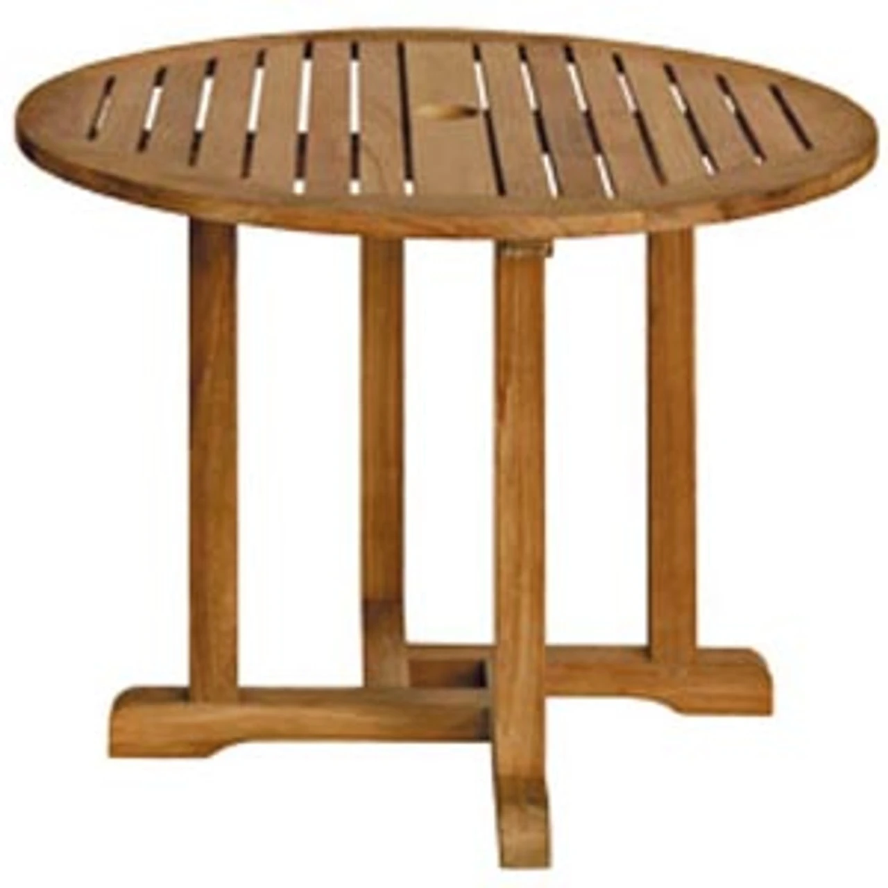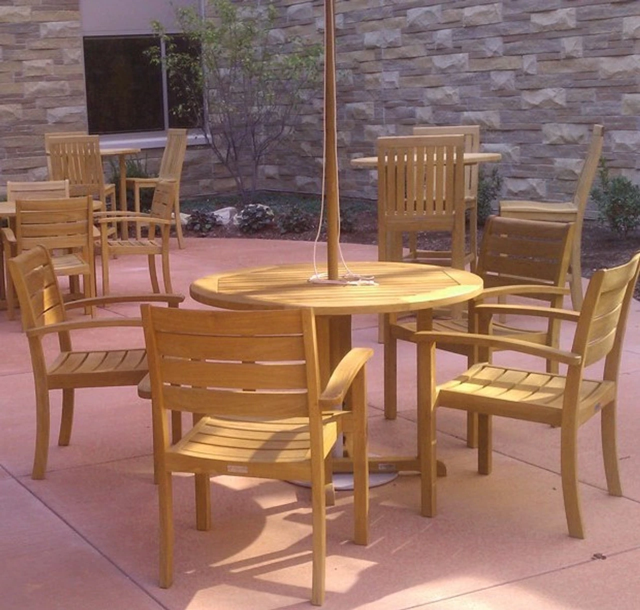 Welcome to your destination for all of your al fresco get-togethers! This Three Birds 36″ Round Oxford Table with 4 Sedona Chairs Set from Outdoor Furniture Plus creates a space where memories will be made for numerous years. Crafted of smooth grade-A teak, the table features a pedestal for extra legroom, but adds a slatted top and umbrella hole for extra visual interest and shade. It also comes with stainless steel hardware and comes with four durable, slat-back Sedona Chairs boasting a contemporary, supportive design. Just add an outdoor umbrella to finalize your patio!