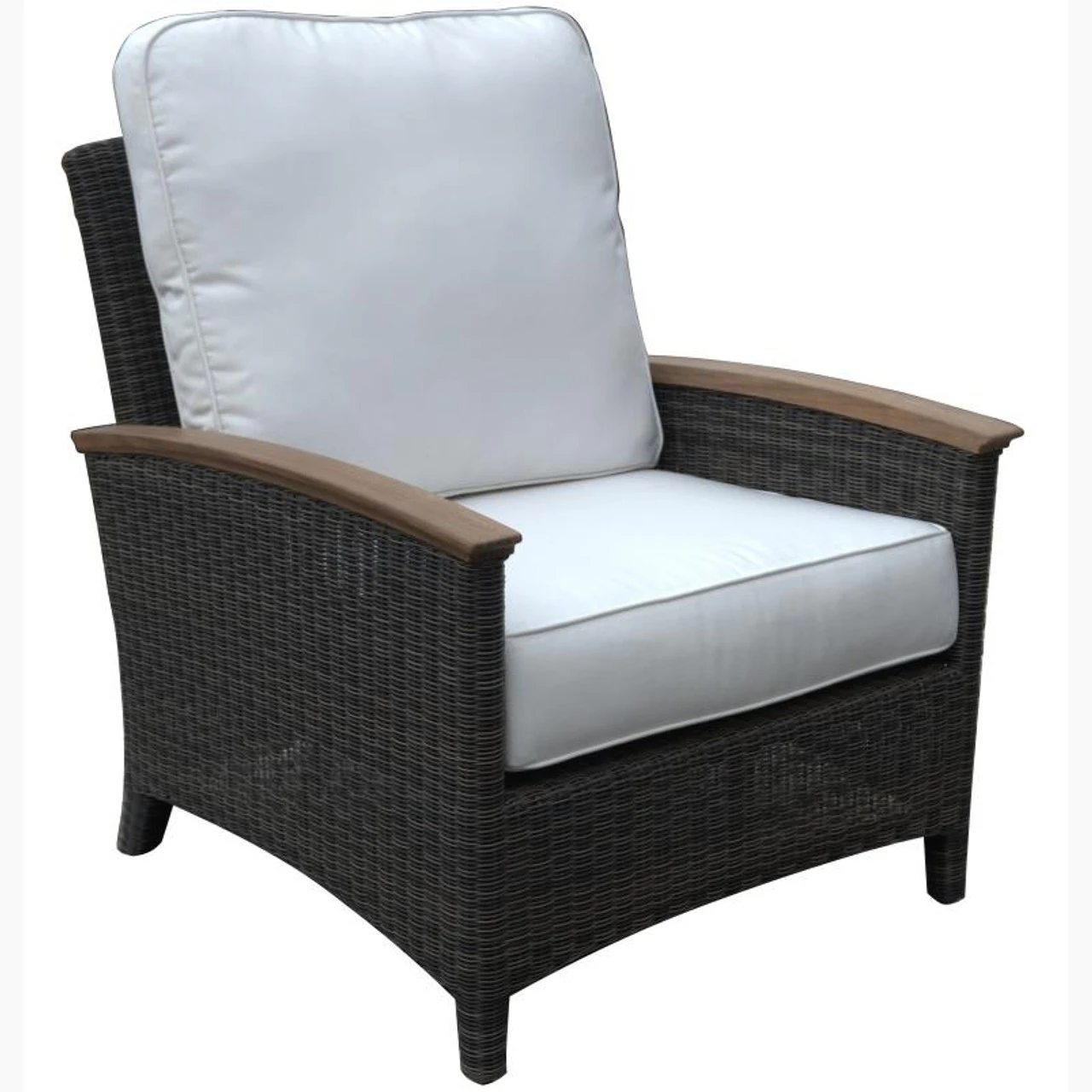 Resin Wicker over Aluminum powdered Coated Frame & Grade A Plantation Grown Teak Armcaps and Table