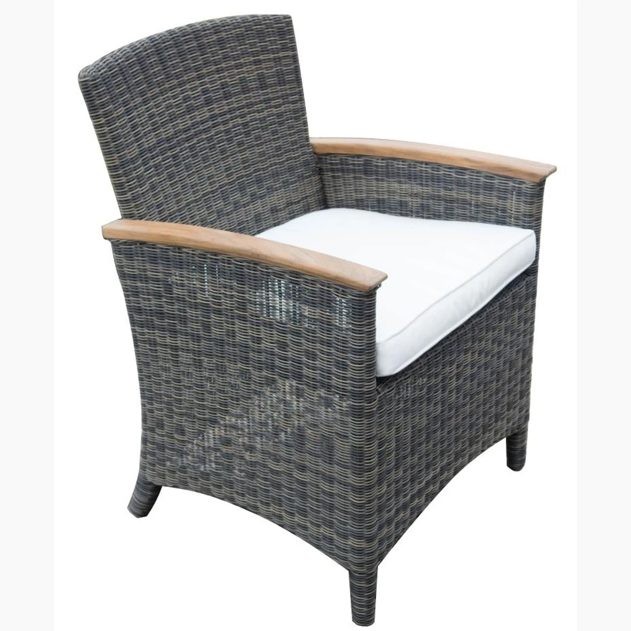 Resin Wicker over Aluminum powdered Coated Frame & Grade A Plantation Grown Teak Armcaps and Table