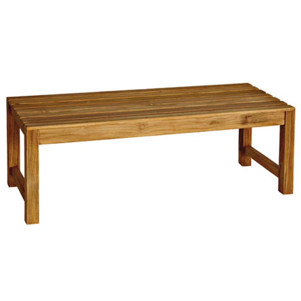 The above backless teak bench is shown in the 4′ length. (Main Image)