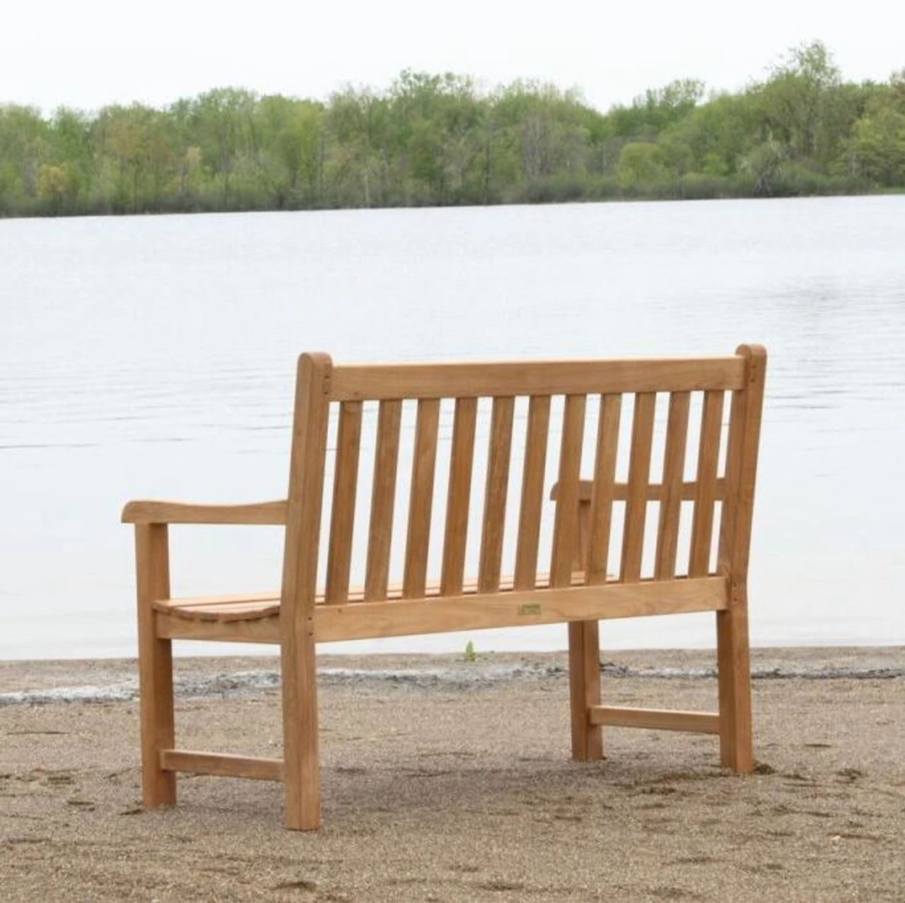 The Classic 5-Foot Teak Garden Bench is designed to bring timeless whimsy to any exterior environment. Exquisitely styled with wide back slats and armrests, the Classic Teak Bench (5) offers ample space for intimate outdoor enjoyment for two or three. Its constructed from hardy, plantation-grown teak with natural wood oils that give the piece a smooth finish while maintaining the teaks natural color and spirit. It measures 37.5 inches high by 60 inches wide by 24 inches deep. Optional welted box cushions are available in your choice of Sunbrella fabric from Outdoor Furniture Plus.