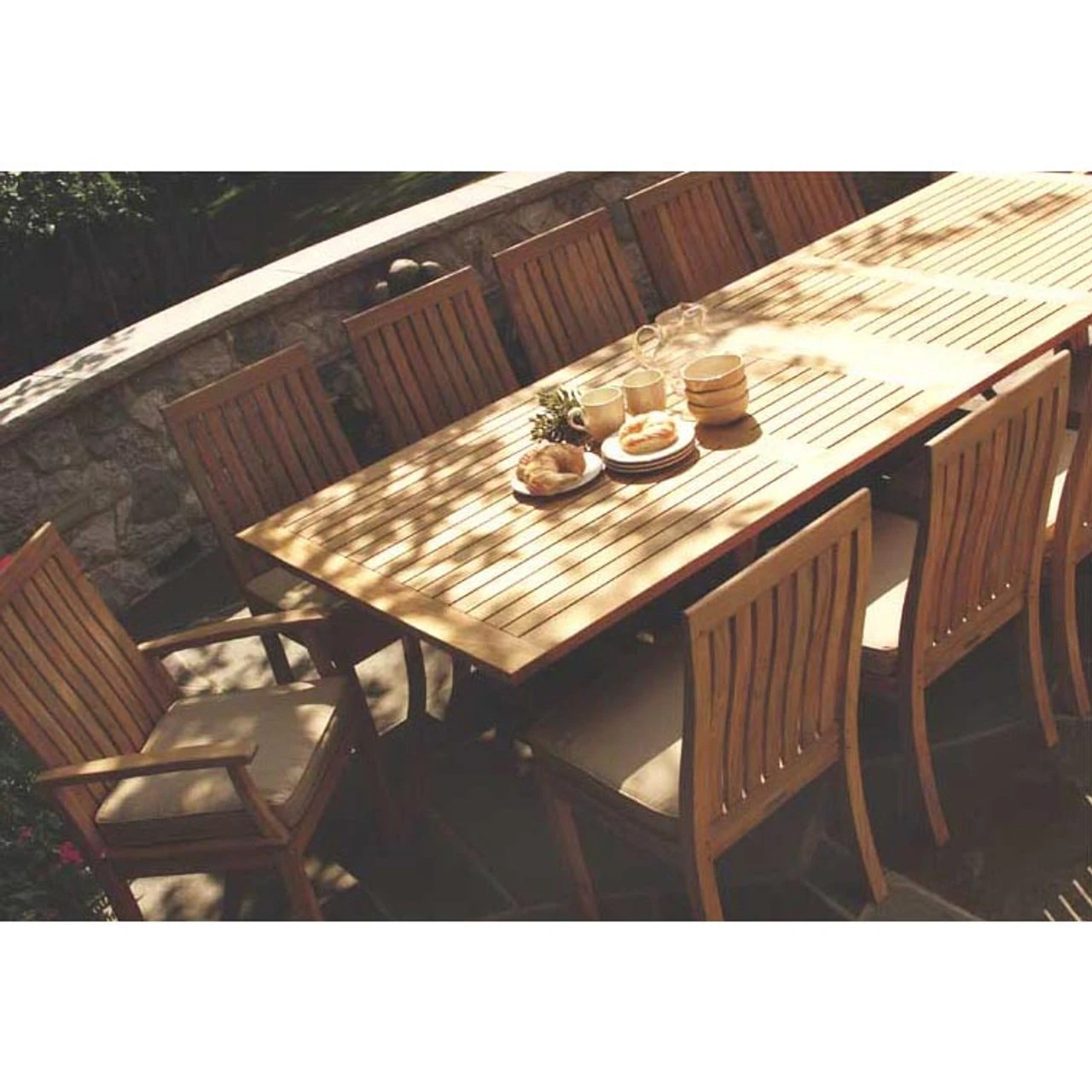 For people with very large families or frequent dinner guests, this Three Birds Monterey 11-Piece Dining Set from Outdoor Furniture Plus offers ample seating for any size dinner party. The set is made of Grade A plantation grown teak that has been polished smooth for a truly high quality finish, and it includes the Chelsea extension table at the center that extends from 80 to an impressive 115 long. Eight Monterey side chairs and two Monterey armchairs create seating around the table, and they even come with optional welted box cushions for added comfort.